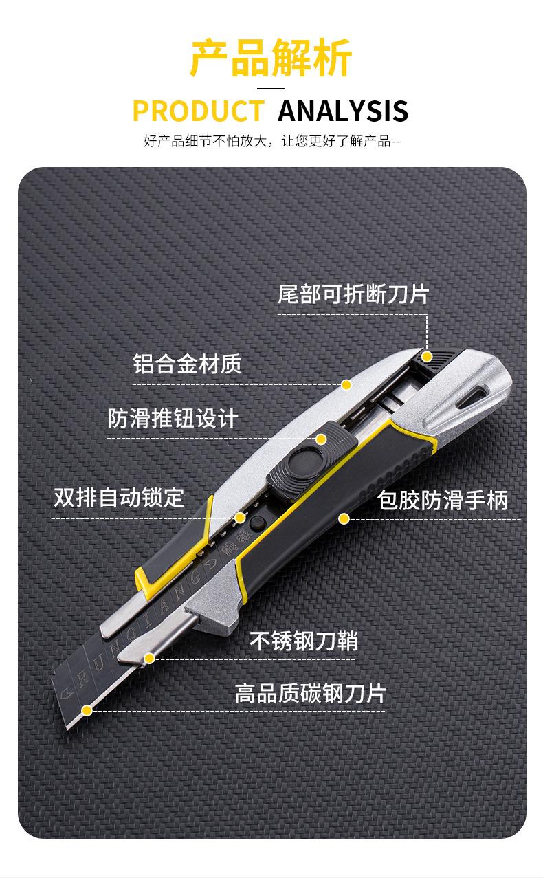Cuchillo utilitario grande al por mayor para abrir paquetes, cortador de papel de aleación de aluminio con hoja afilada, cuchillo utilitario