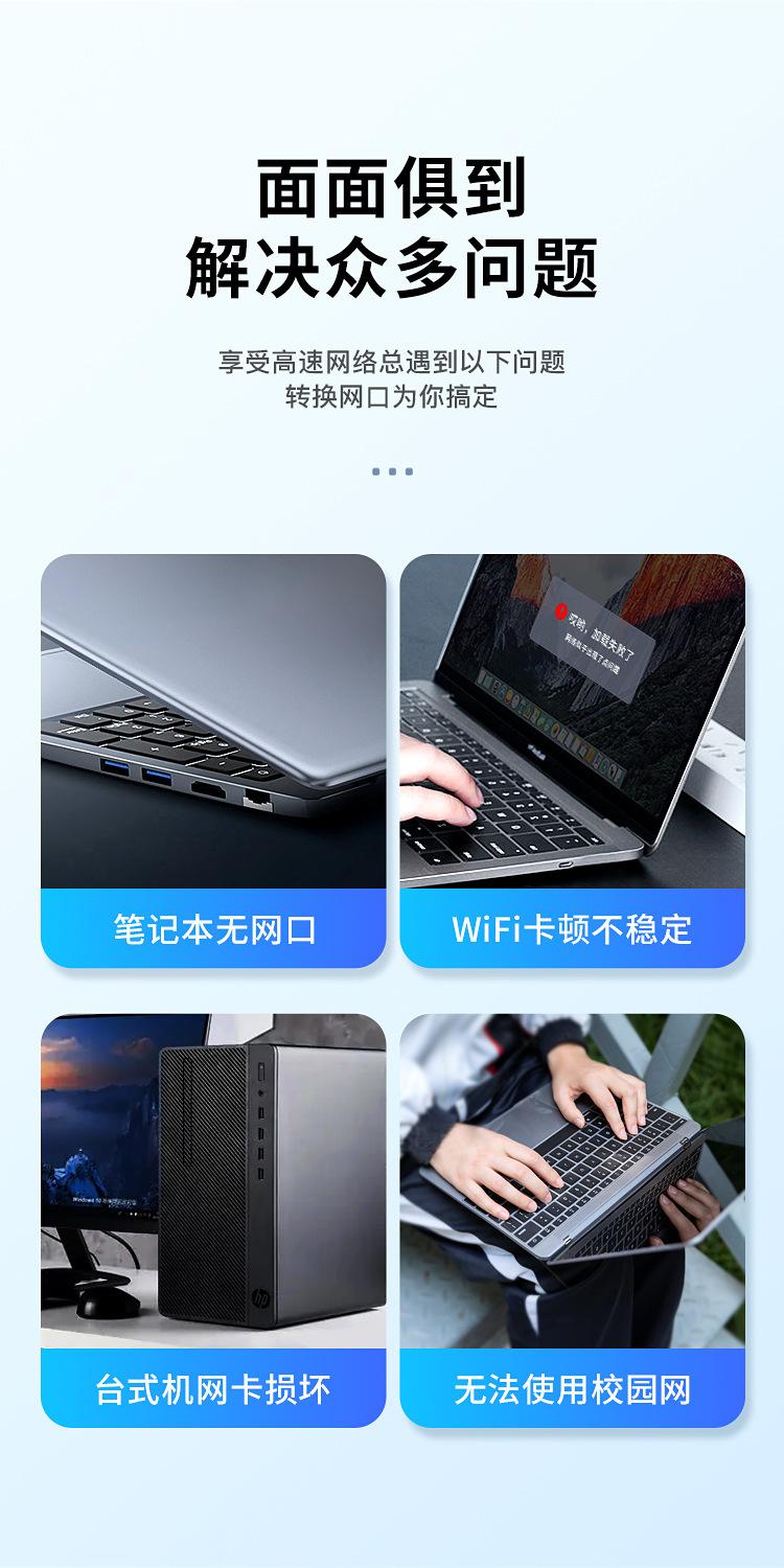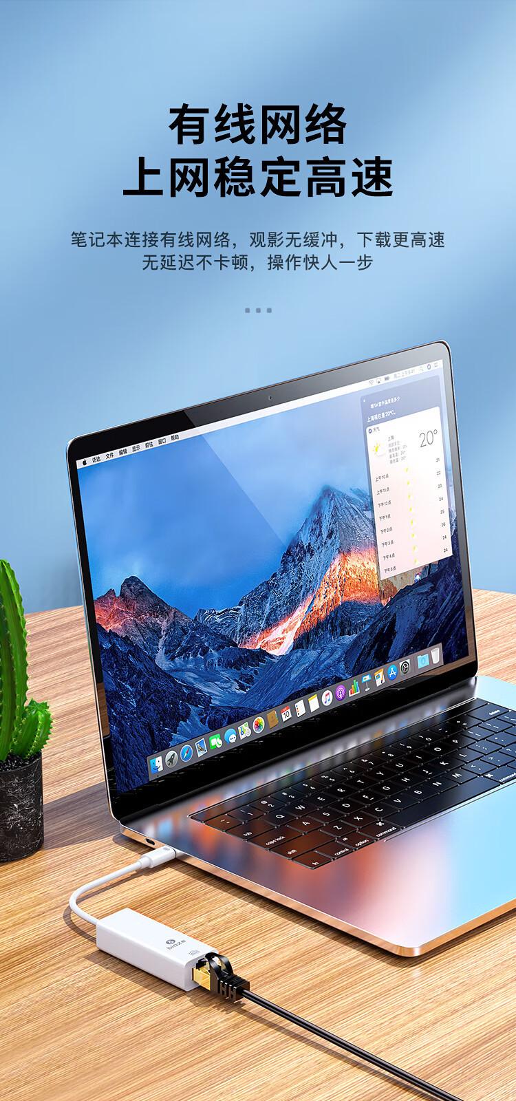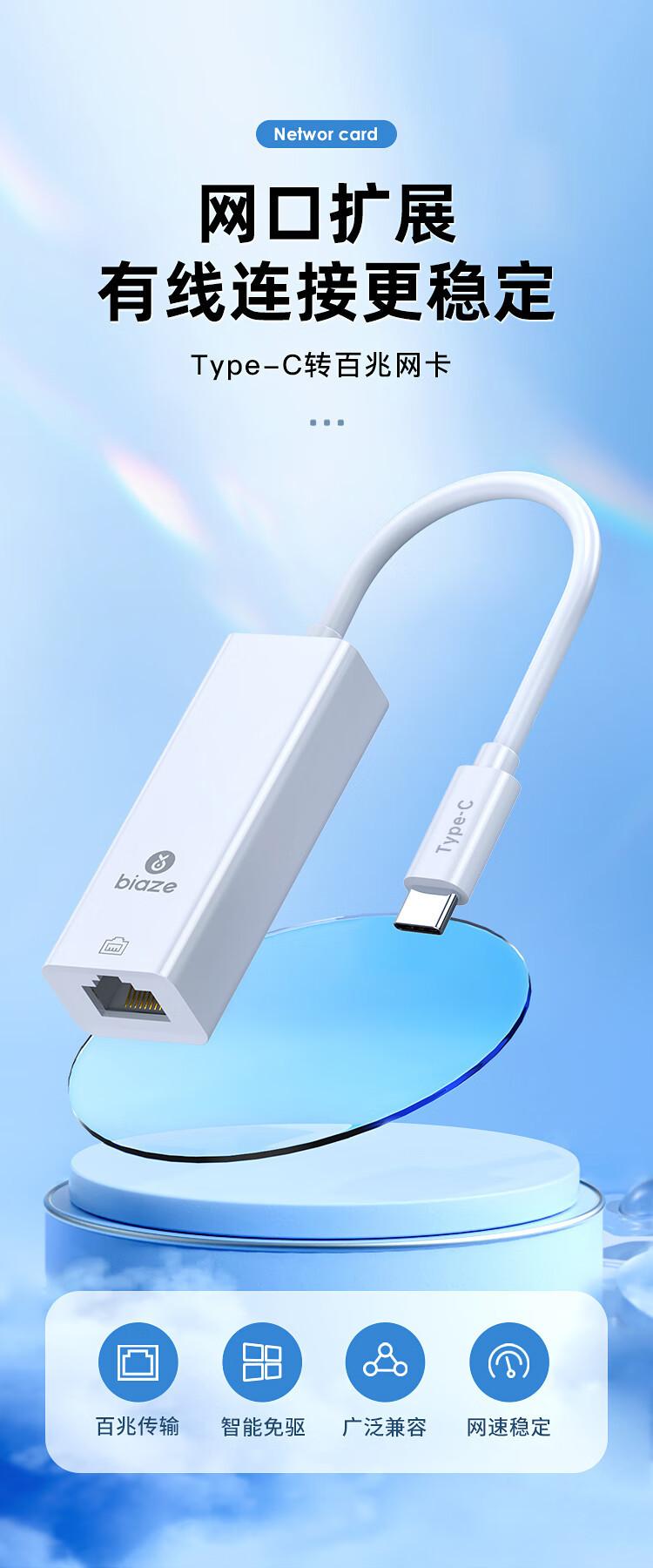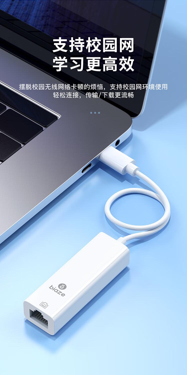 Biaz 15 convertidor Ethernet Tipo-C a puerto de red RJ45 USB-C Cableado Tarjeta de red de 100 m sin controlador