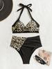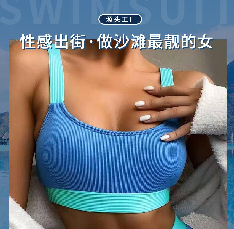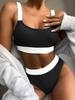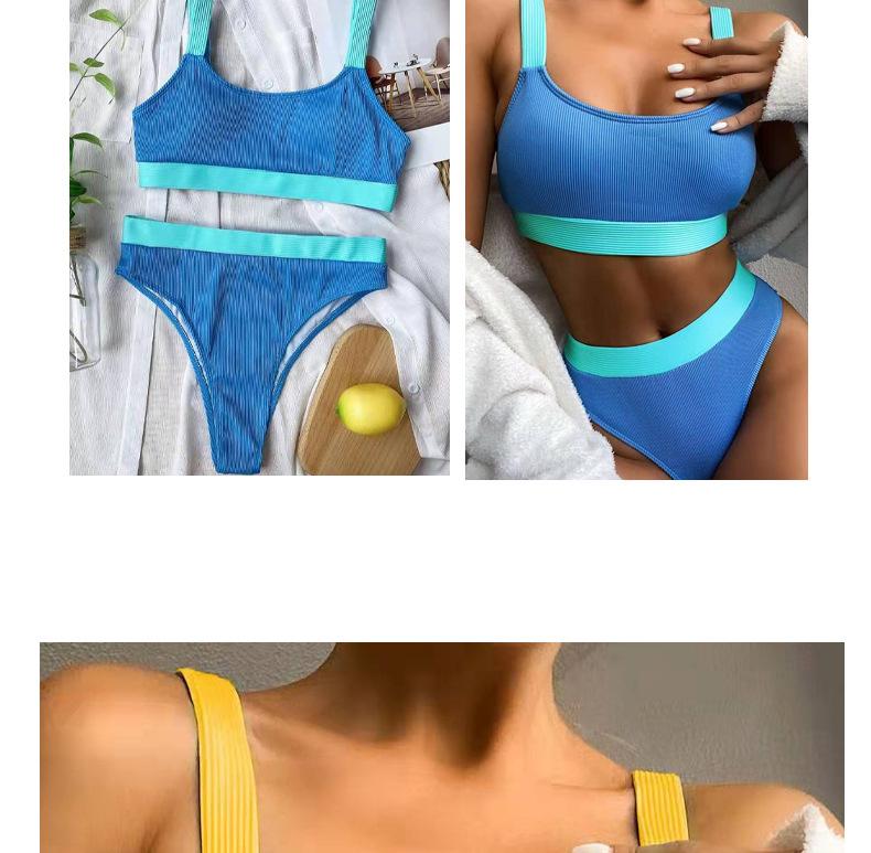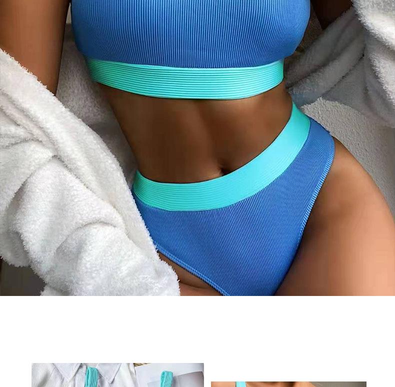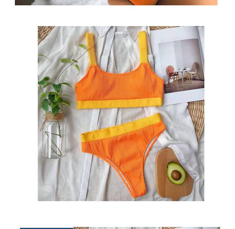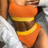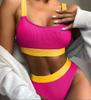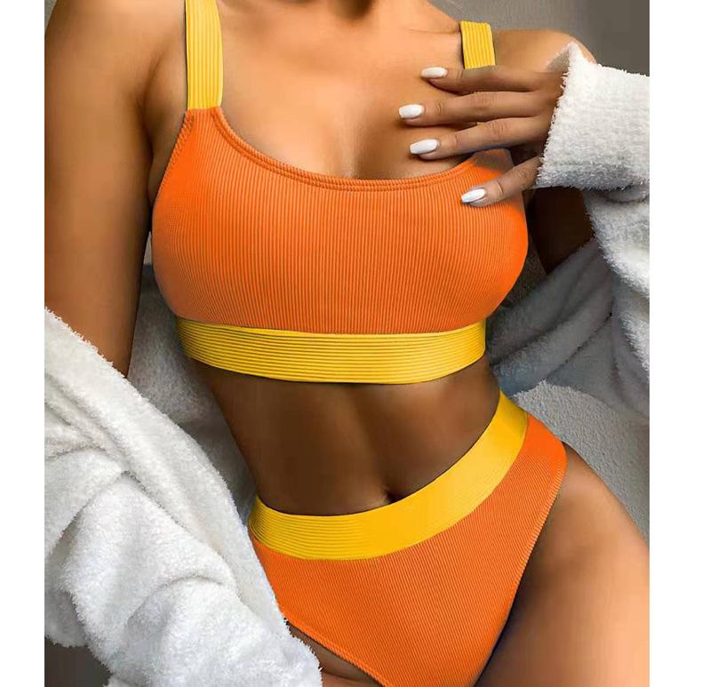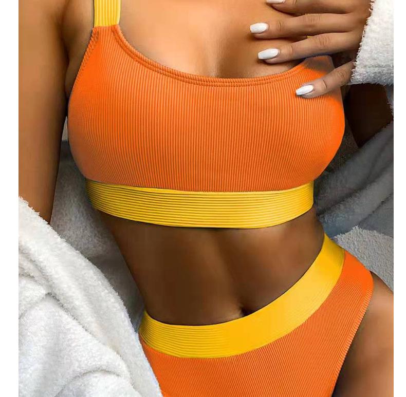 Traje de baño de bikini dividido cruzado de un solo color sólido sexy de punto de cintura alta para damas traje de baño de playa bikini