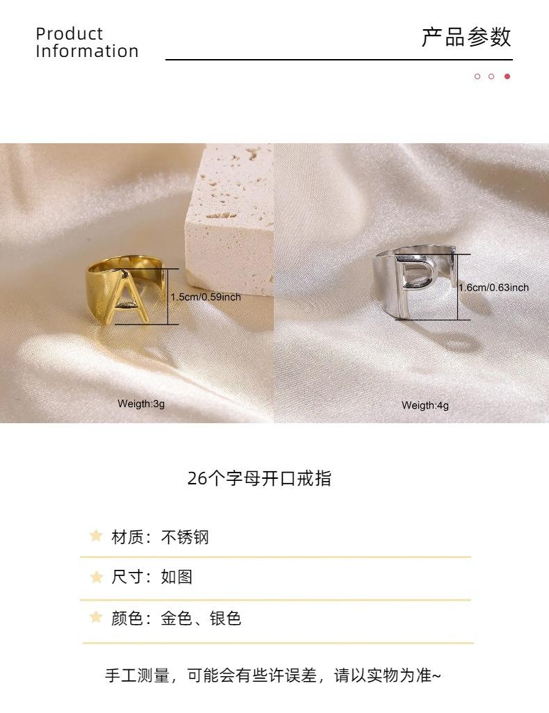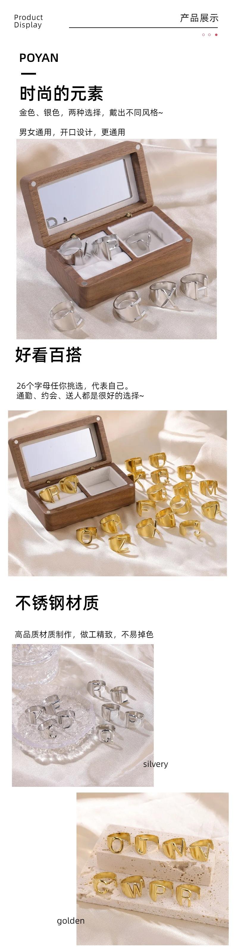 Anillo de Letra en Inglés Europeo y Americano para Mujer Estilo Ins Moda Anillo de Unión Personalizado Anillo Retro Anillo Abierto de Acero Inoxidable