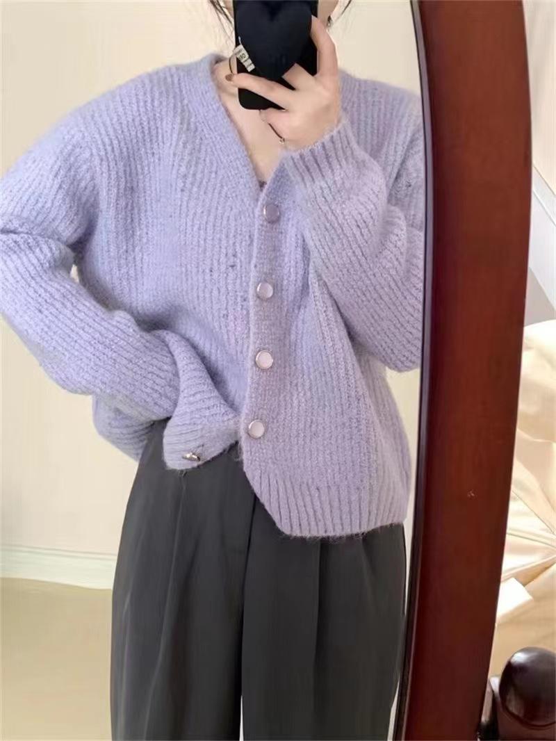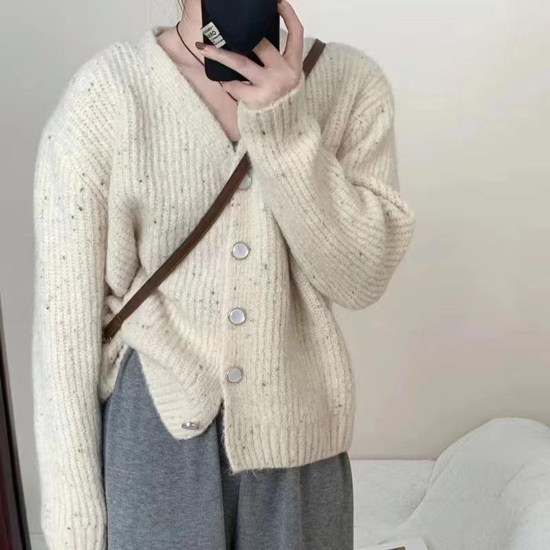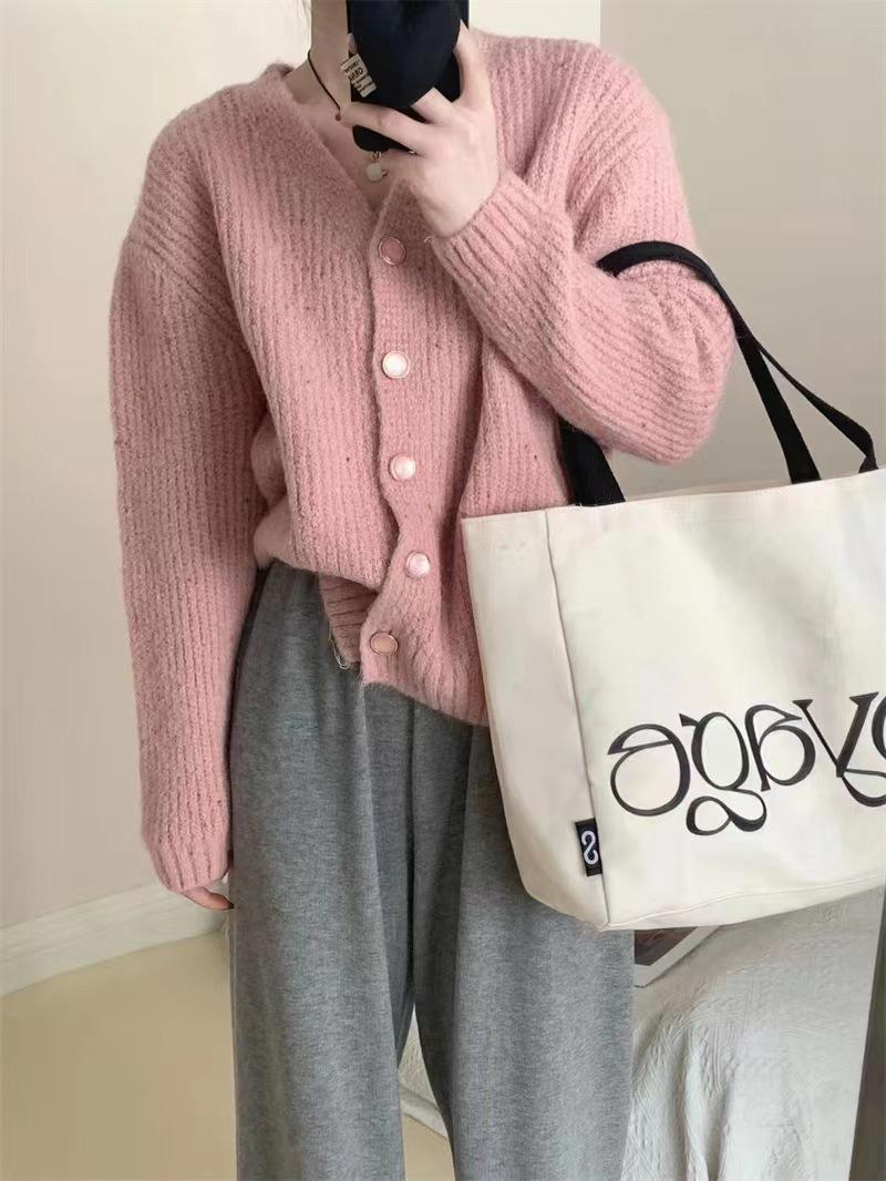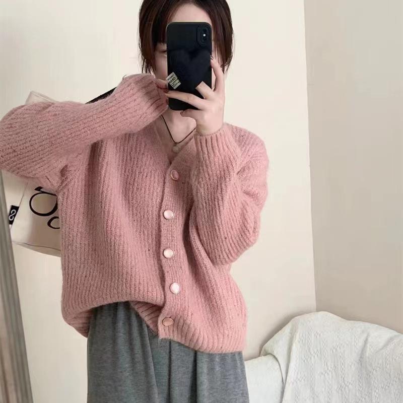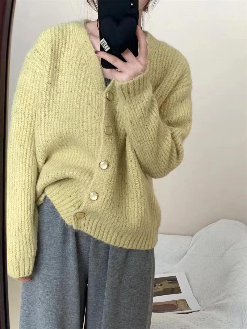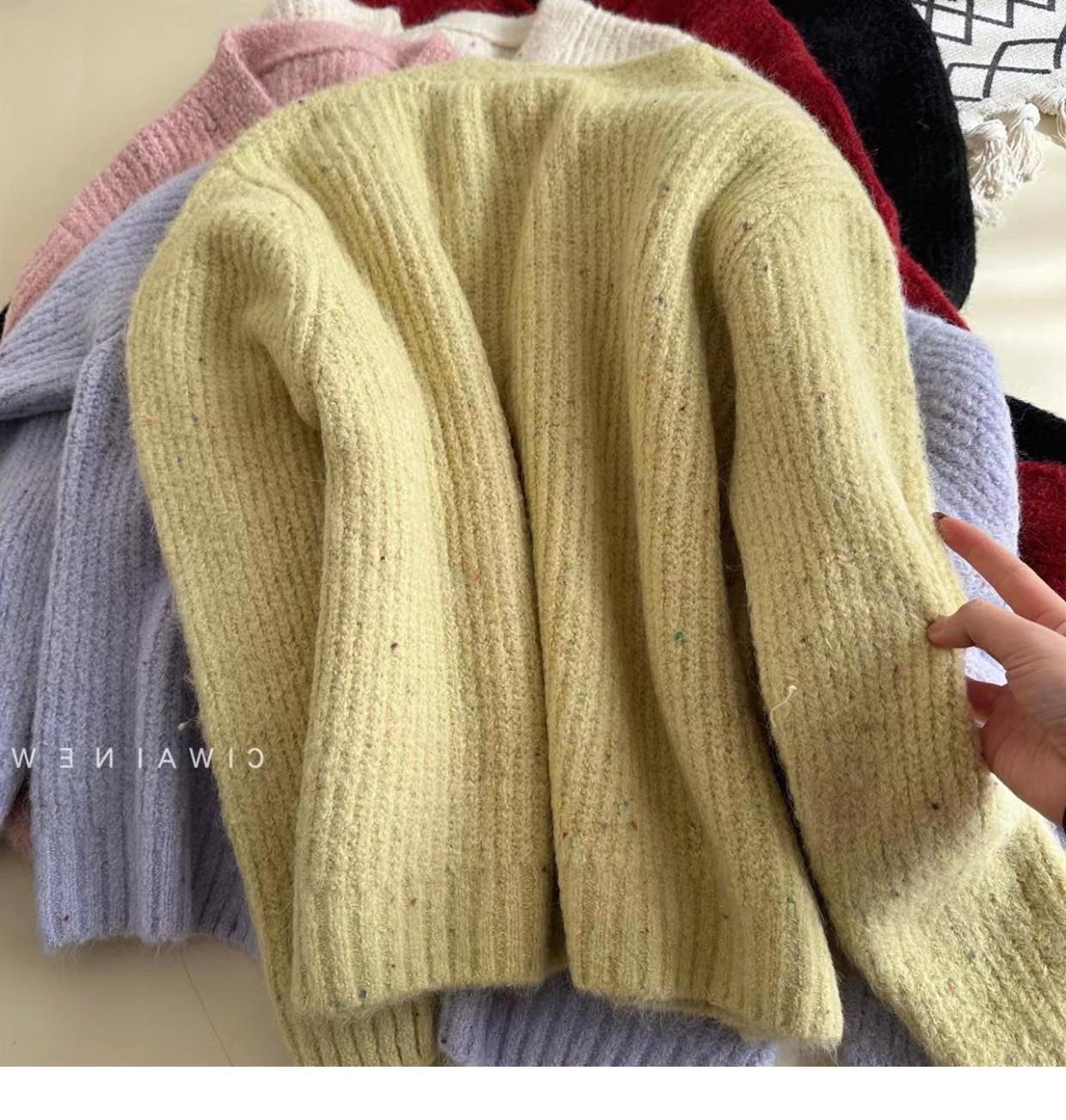 Cárdigan de punto con cuello en V grueso y elegante para mujer, estilo suave y colorido, combina con todo, otoño e invierno