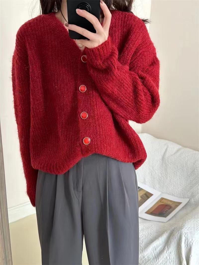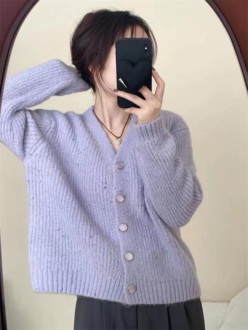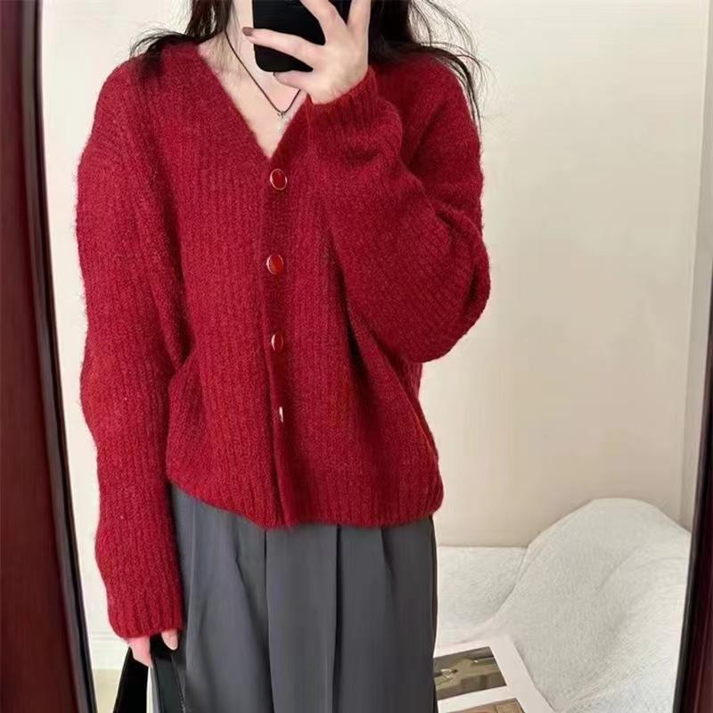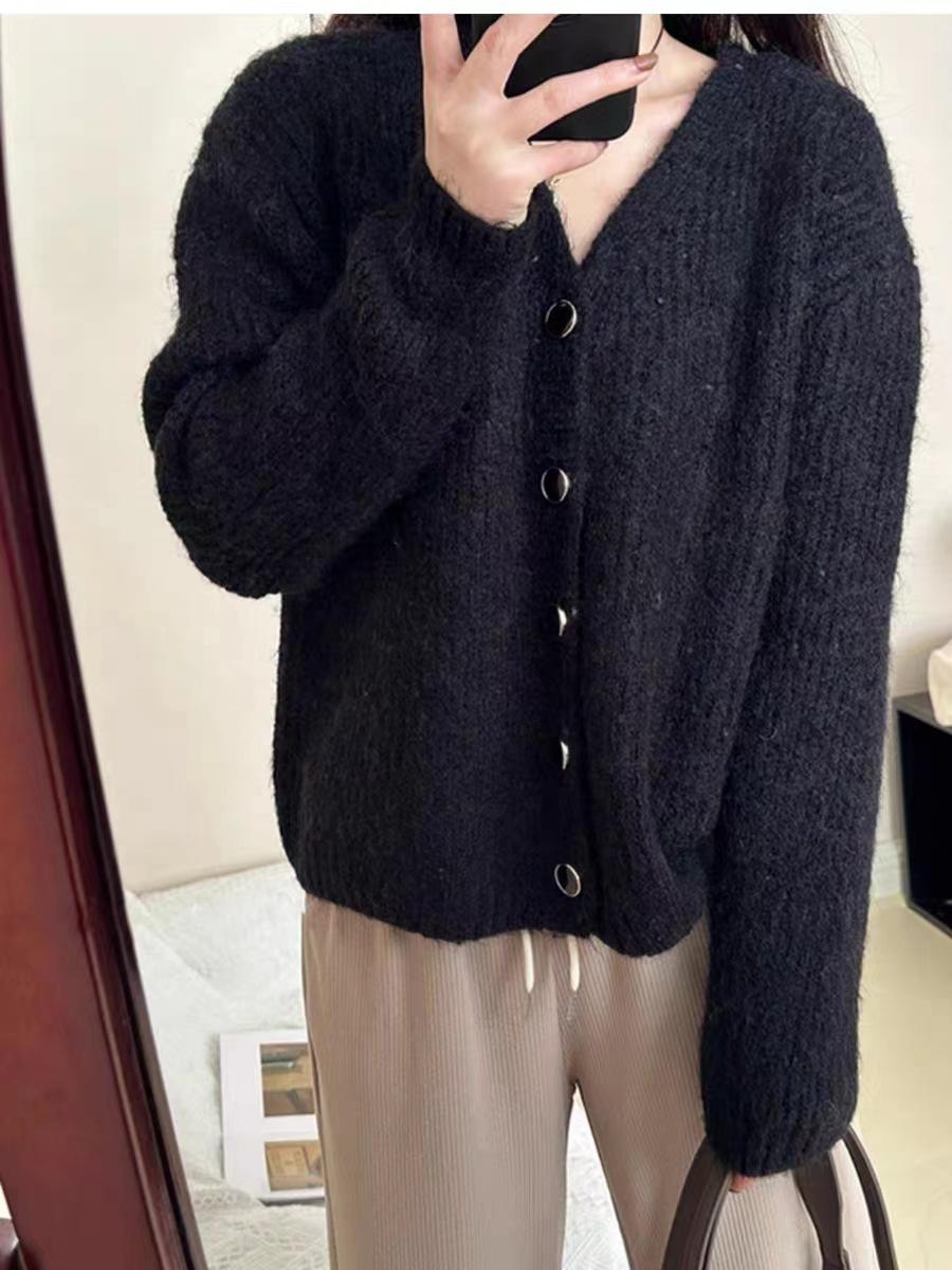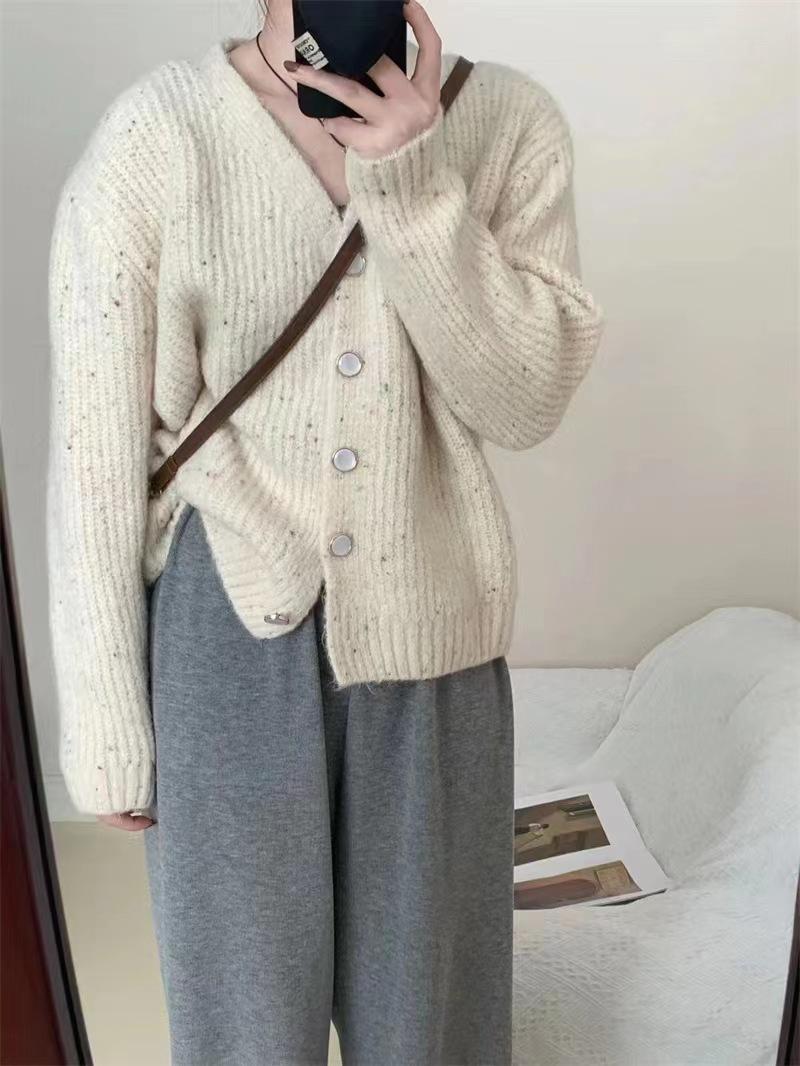 Cárdigan de punto con cuello en V grueso y elegante para mujer, estilo suave y colorido, combina con todo, otoño e invierno