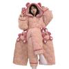 Pijama de Oso Fresa para Mujer Invierno Forro Polar de Coral Acolchado de Tres Capas Grueso Felpa Invierno Cálido Camisón Largo Ropa para el Hogar