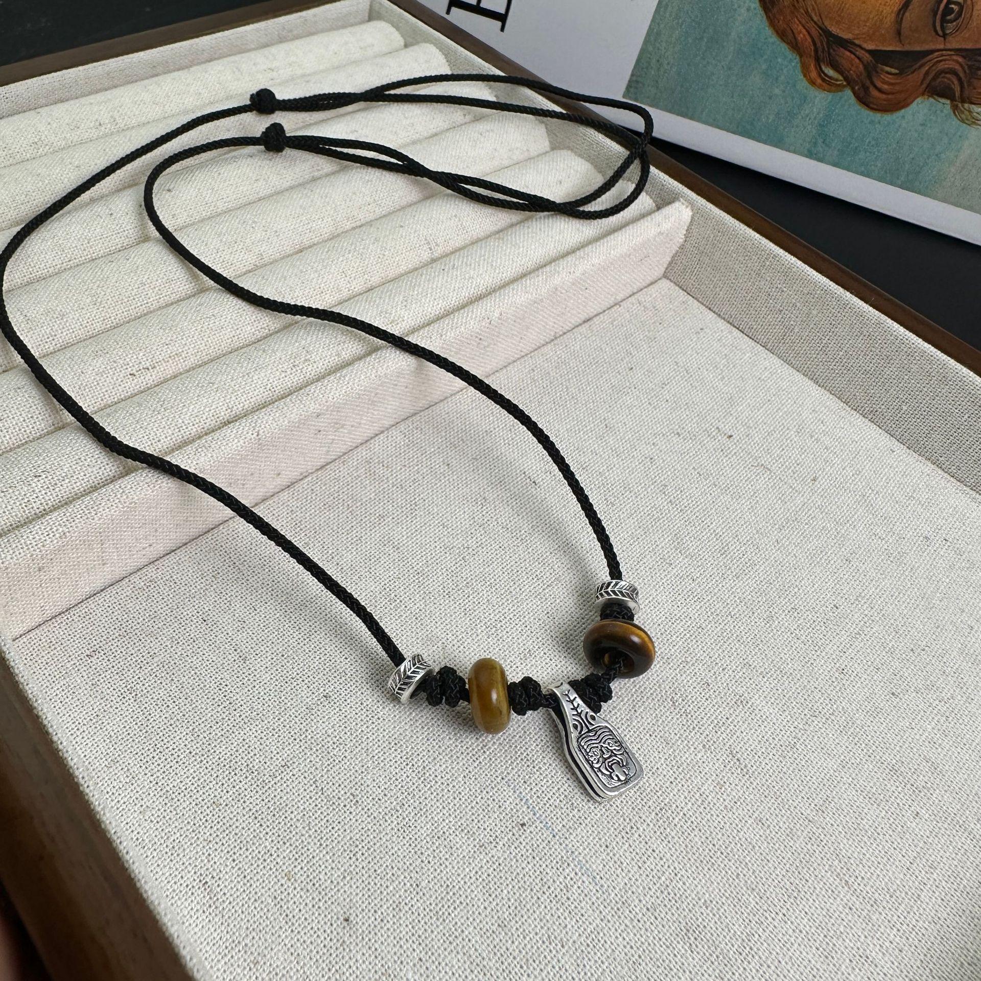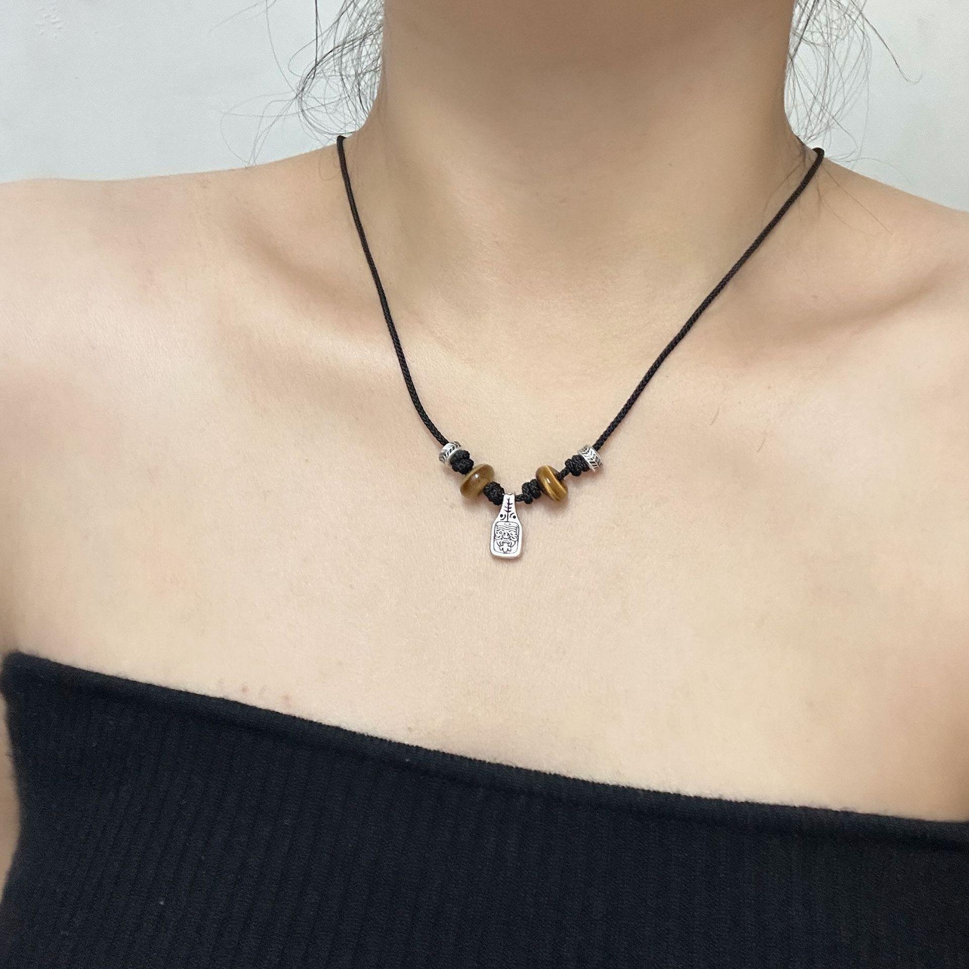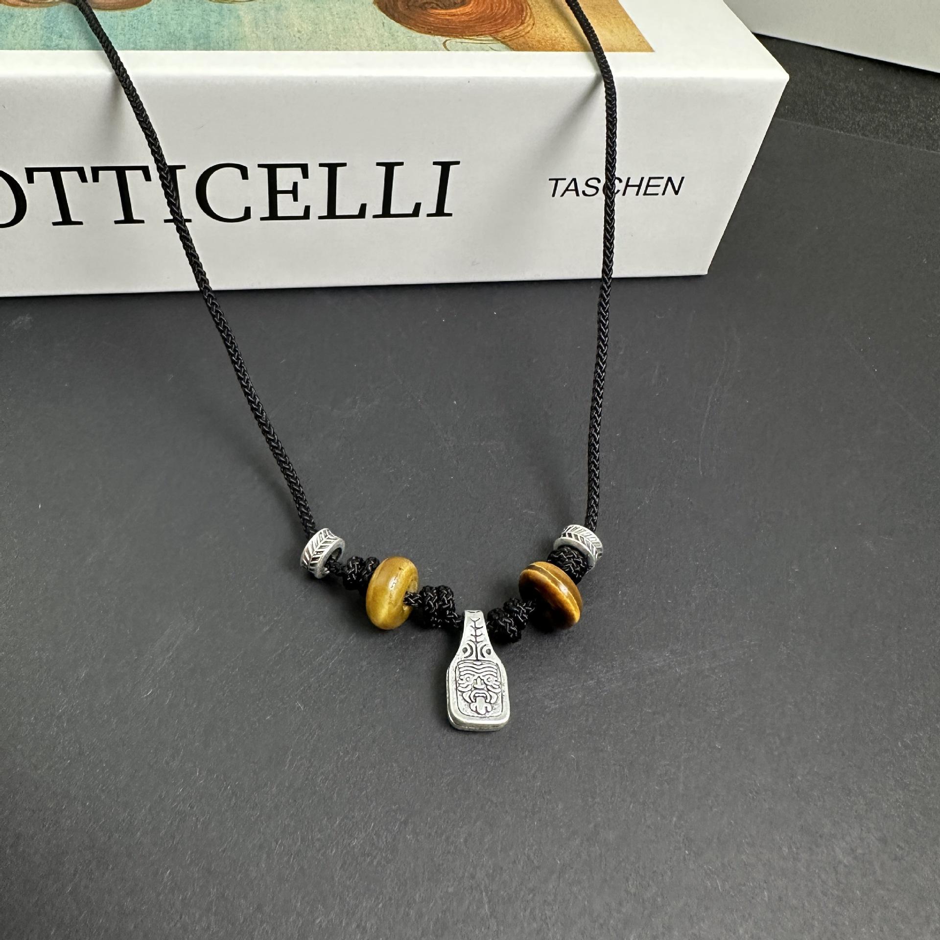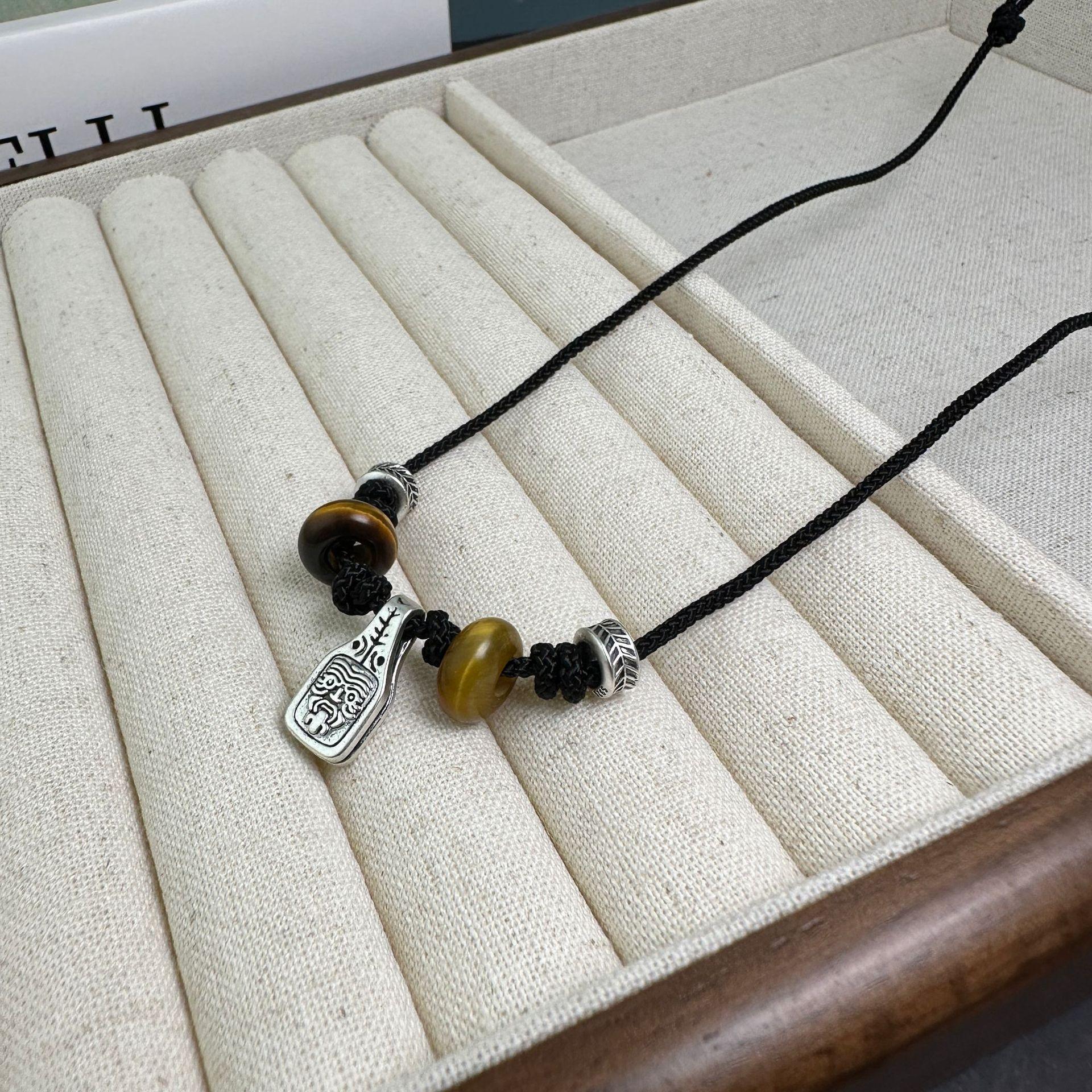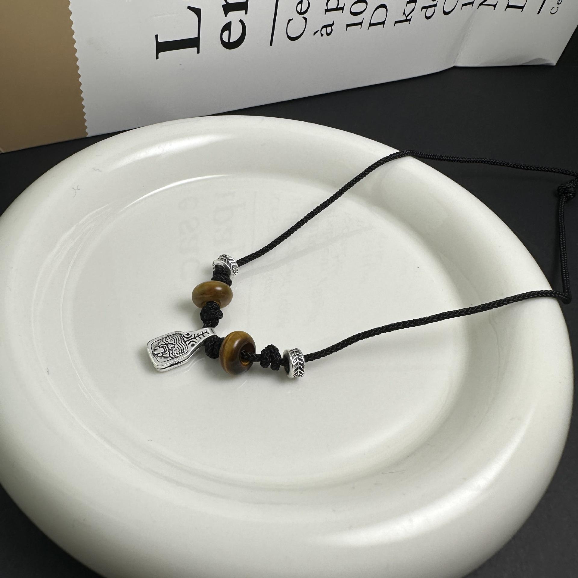 Collar con colgante cuadrado de cuentas redondas de piedra de ojo de tigre de estilo chino nuevo, diseño de nicho para mujer, accesorios de cadena de clavícula con temperamento retro chino