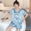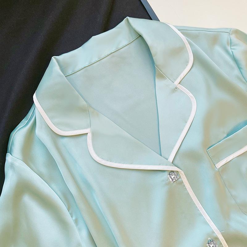 Pijama de verano para mujer, nuevo estilo, traje de seda de hielo, pantalones cortos de manga corta, dos piezas, encaje, estilo princesa, color sólido, ropa informal para el hogar