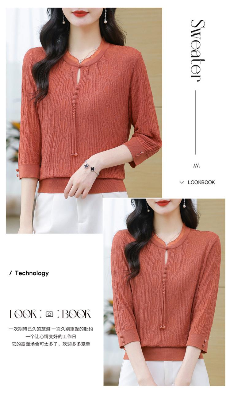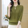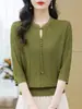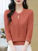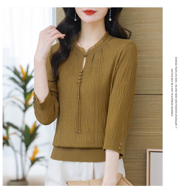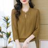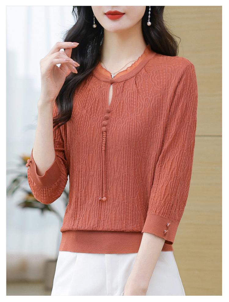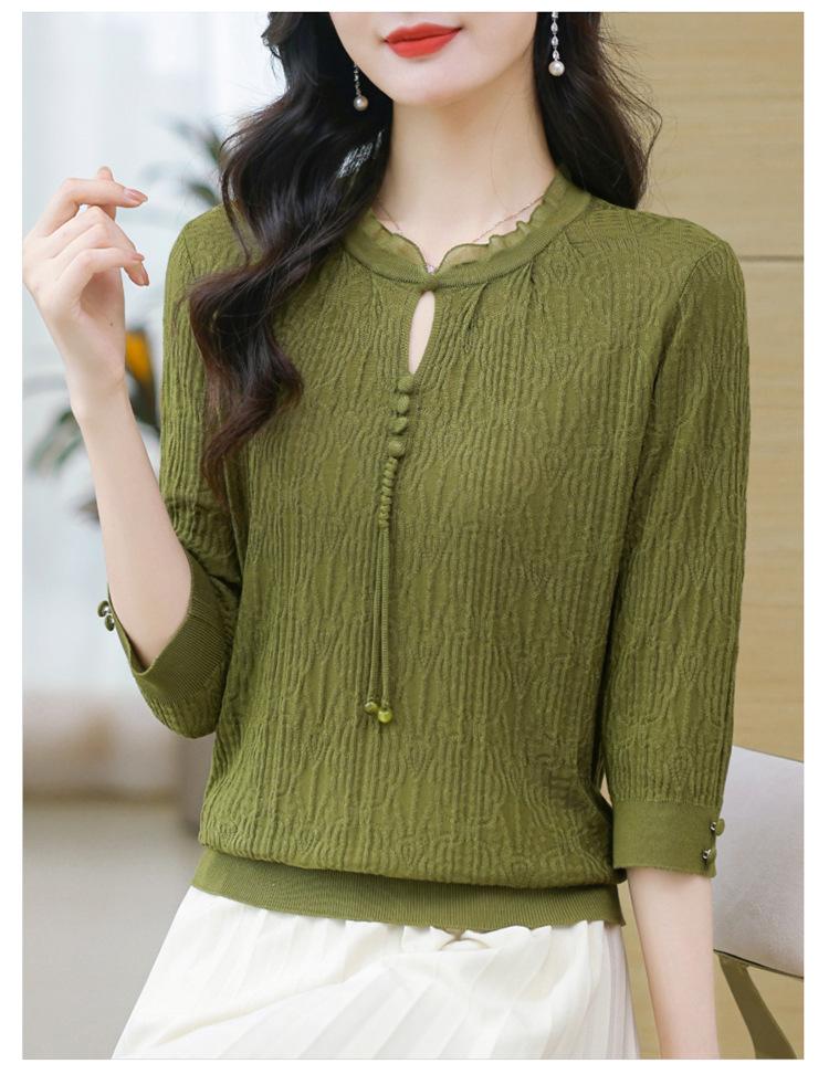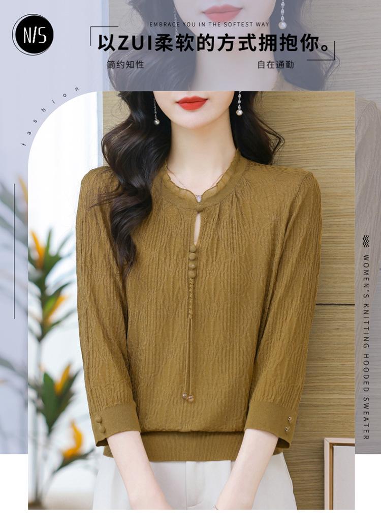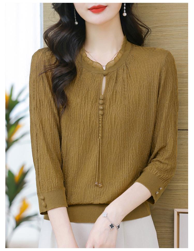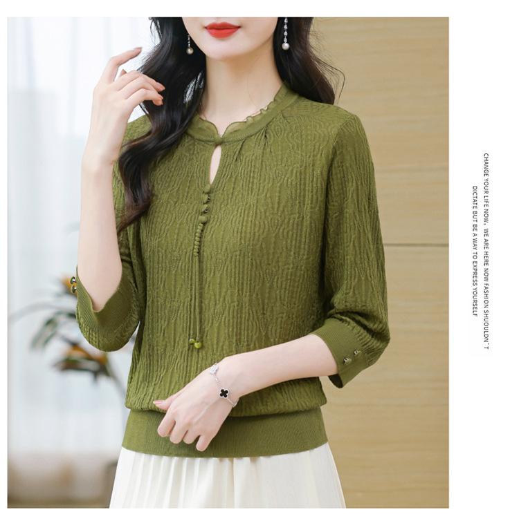 Camisa pequeña de estilo occidental para mujer, blusa holgada y elegante de punto con mangas siete, ideal para primavera y verano.