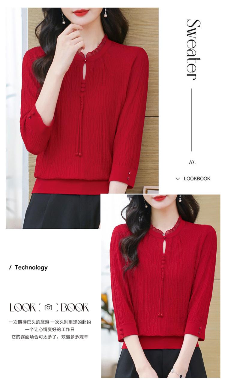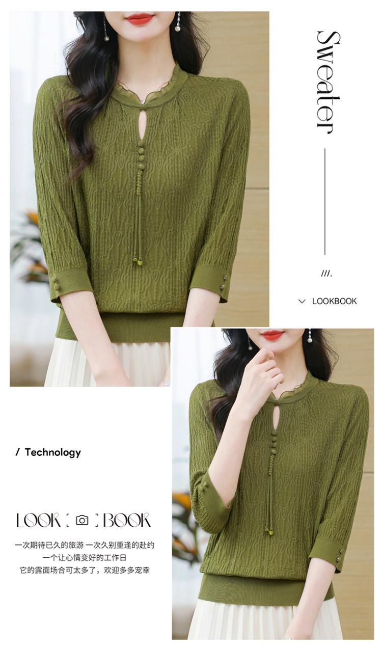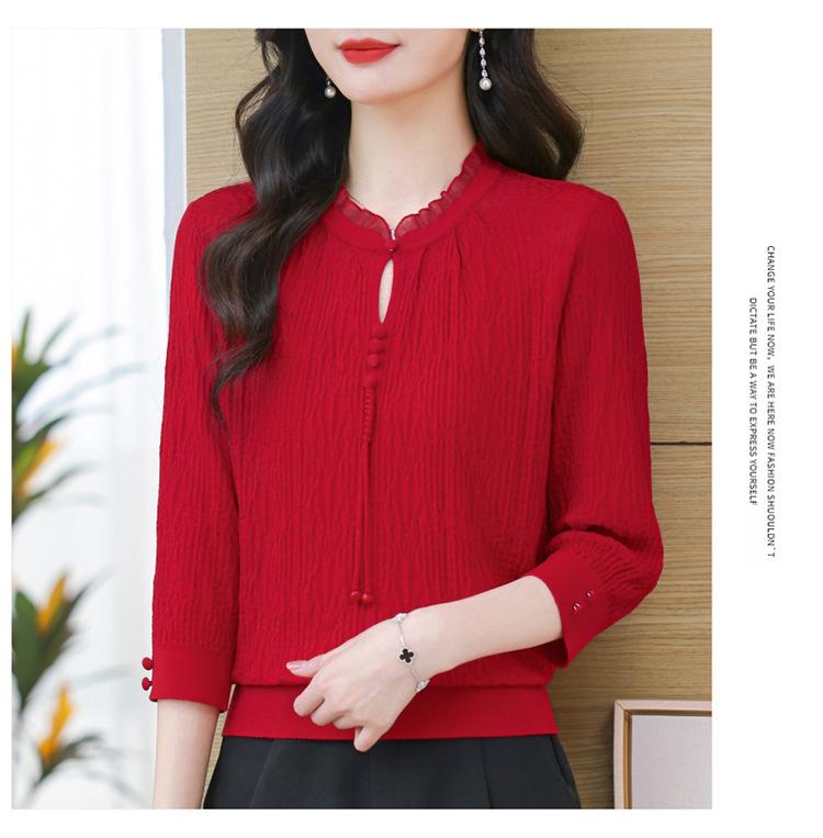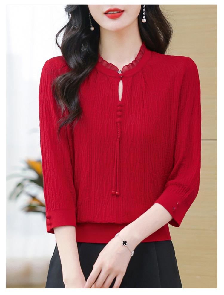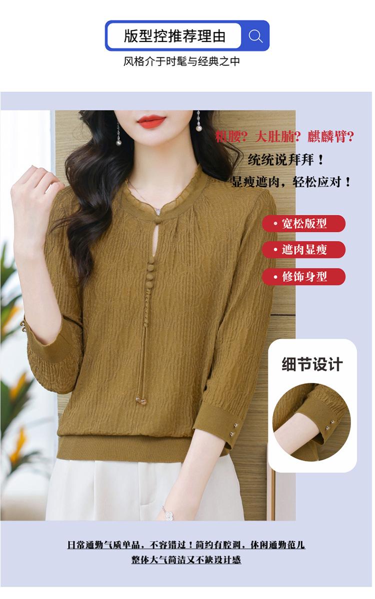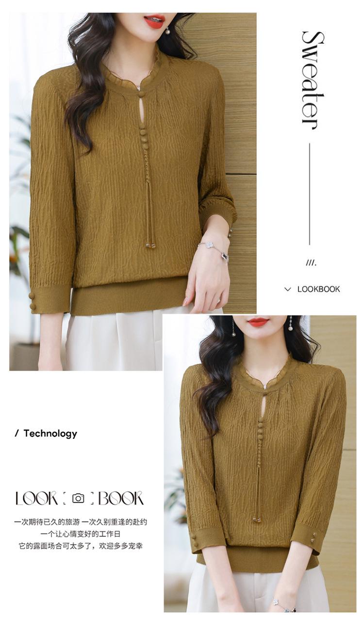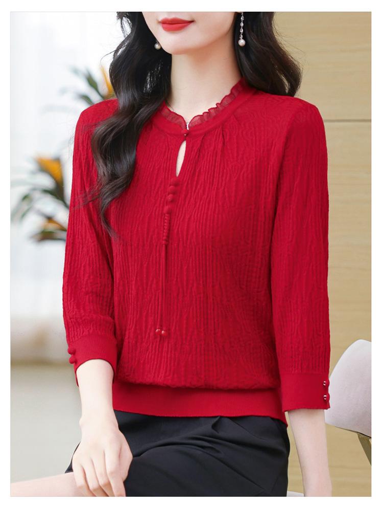 Camisa pequeña de estilo occidental para mujer, blusa holgada y elegante de punto con mangas siete, ideal para primavera y verano.