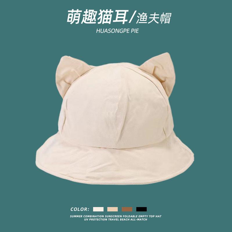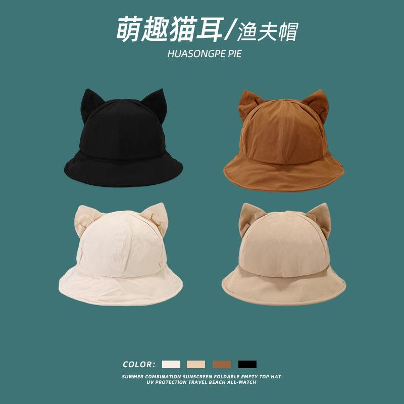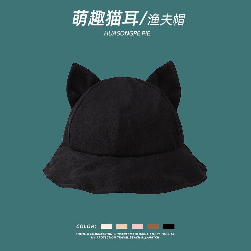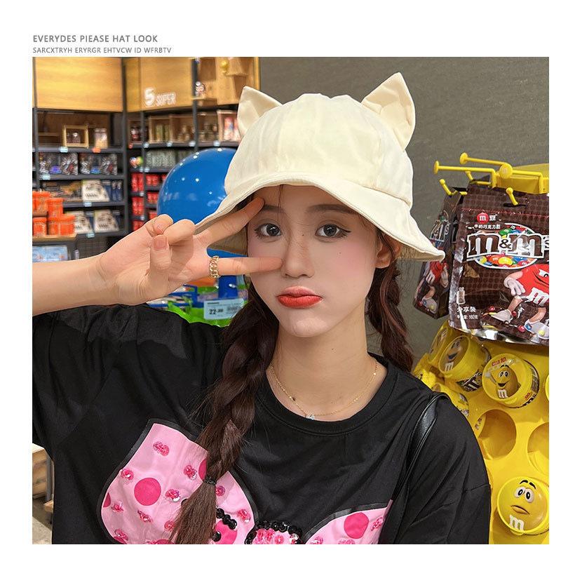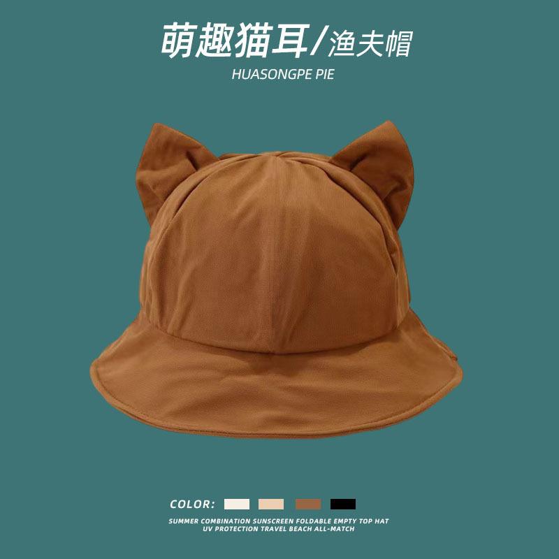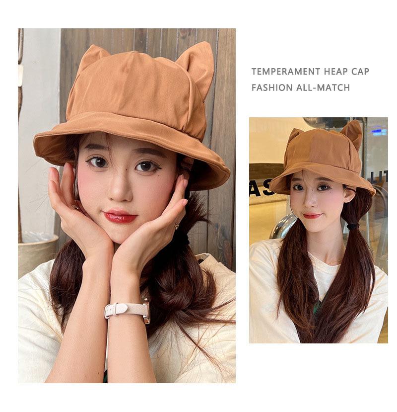 Sombrero de pescador de estilo japonés para primavera y otoño, bonito gorro de pescador con diseño de gato de dibujos animados para mujer, ideal para uso diario en la calle, con protección solar.