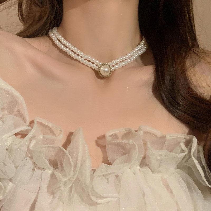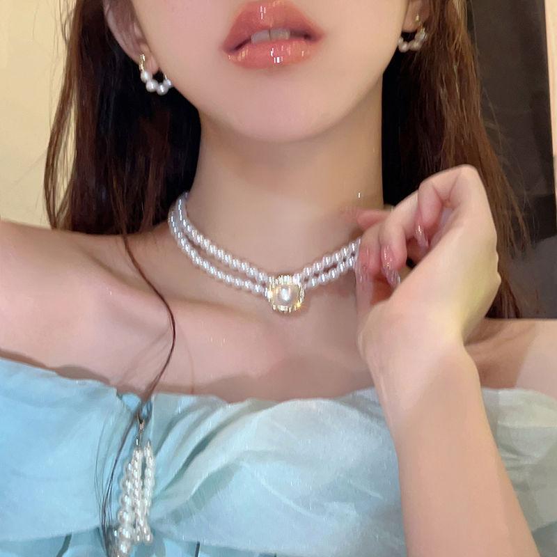 Collar de perlas de doble capa, collar de nicho de alta calidad para mujer, diseño de lujo ligero, cadena de clavícula, nuevo y popular 2023
