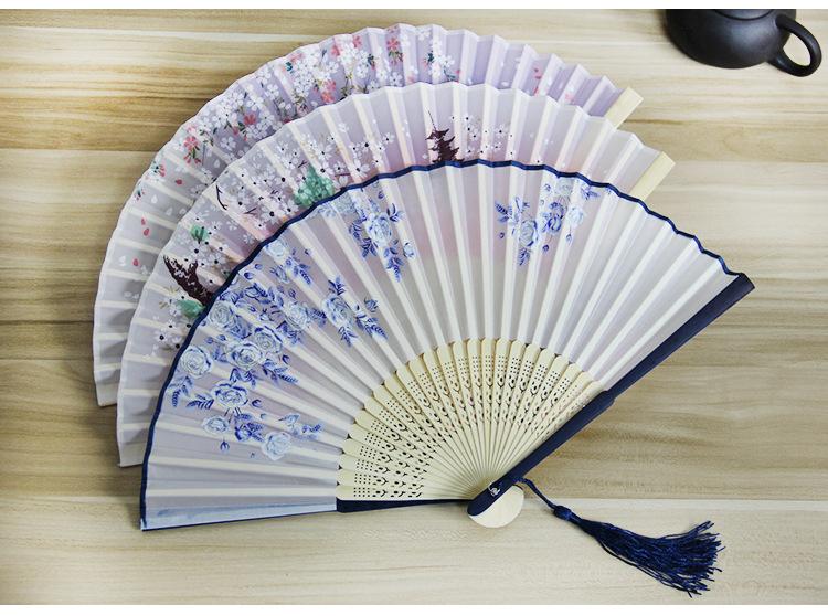 Abanico estilo chino estilo antiguo para mujer estilo japonés pequeño retro de tela para baile de verano y baile clásico plegable abanico plegable para disfraz