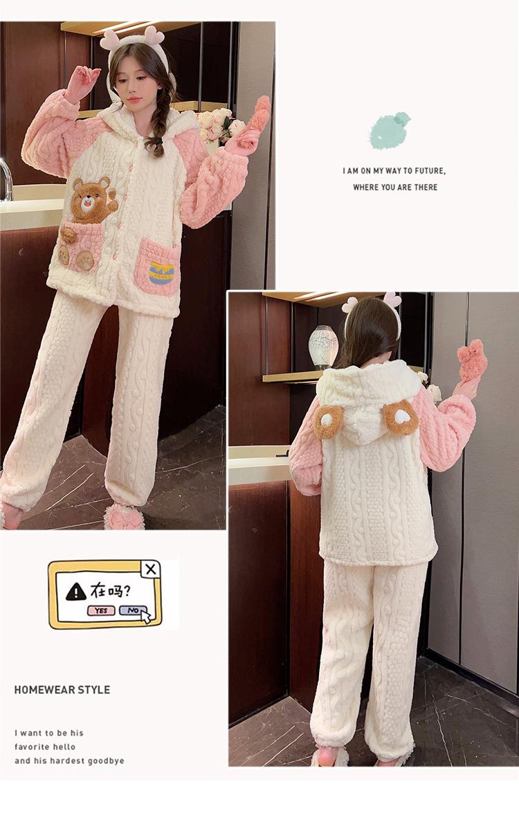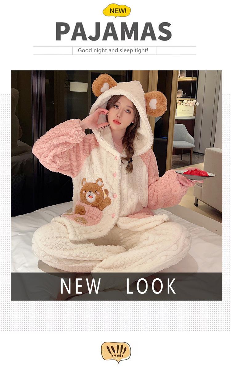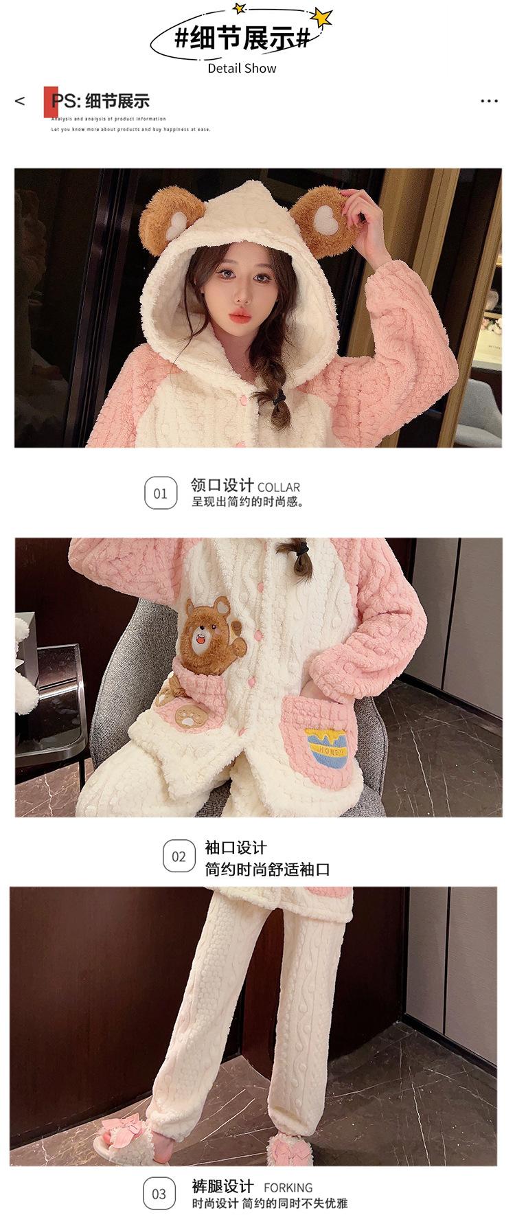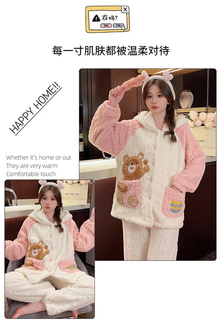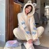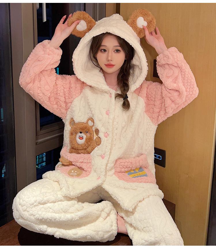 Pijamas para mujer otoño e invierno forro polar de coral lindo dulce estilo Chanel cárdigan con capucha talla grande chica gordita ropa de casa