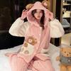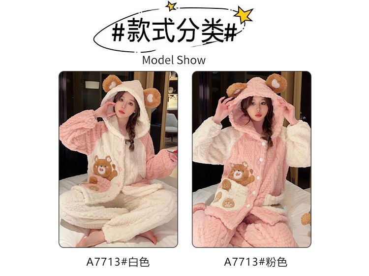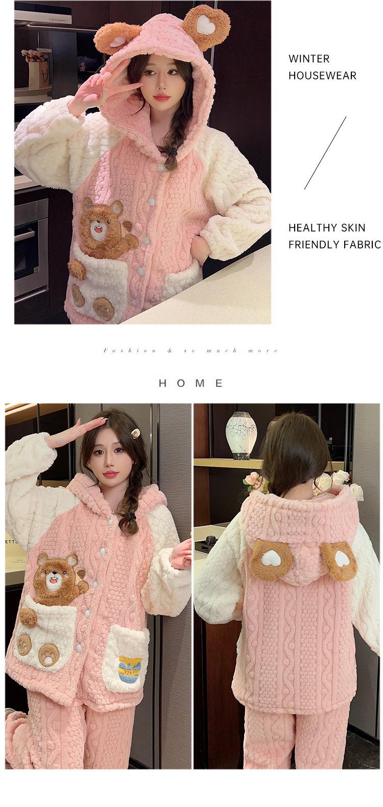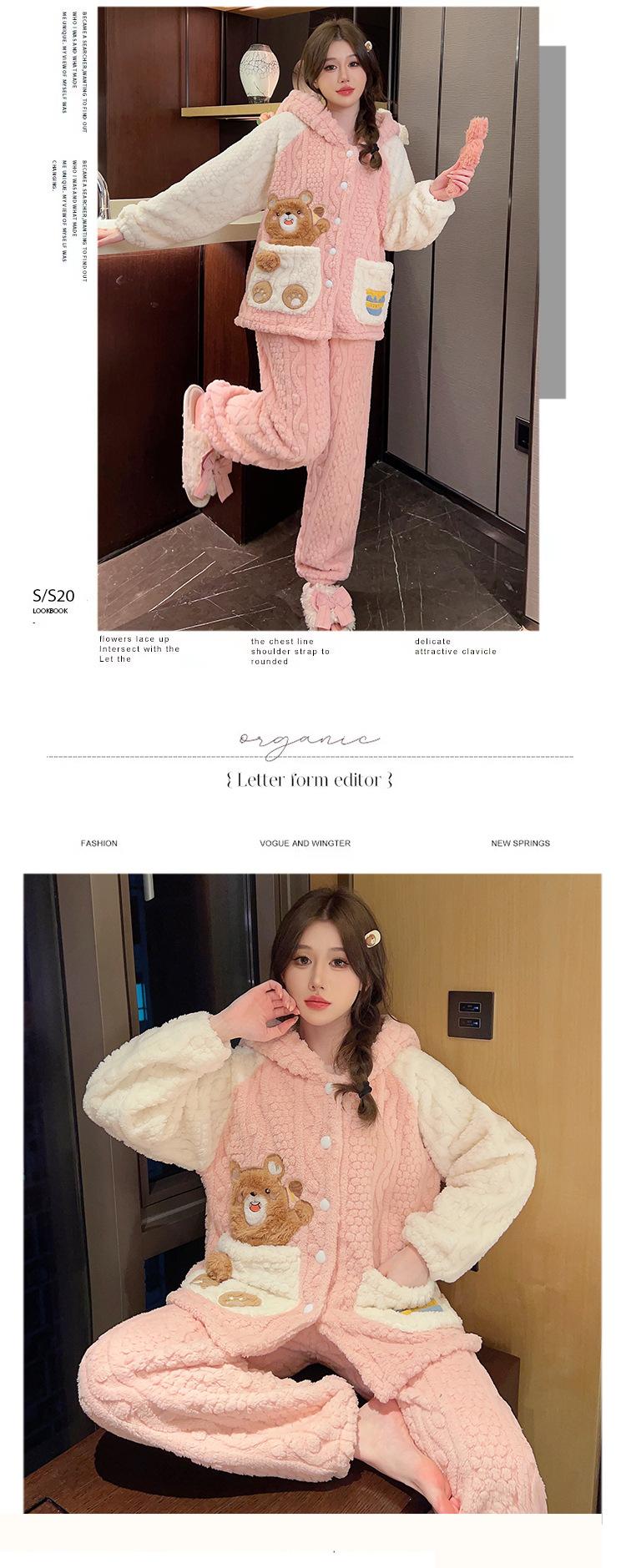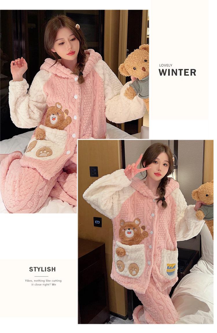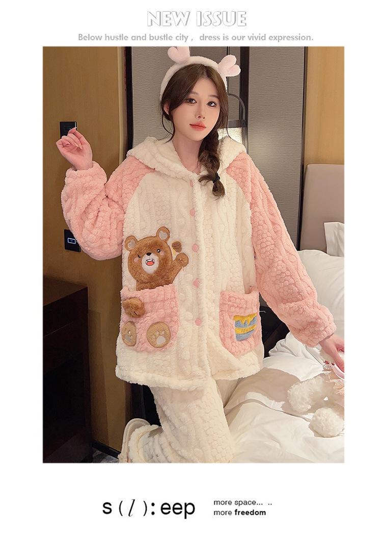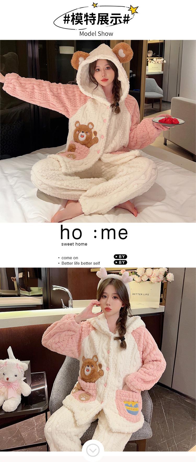 Pijamas para mujer otoño e invierno forro polar de coral lindo dulce estilo Chanel cárdigan con capucha talla grande chica gordita ropa de casa