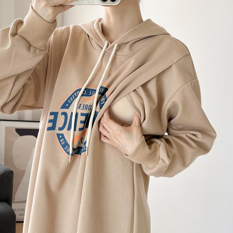 Ropa de lactancia materna, suéter de manga larga, falda, vestido de mamá sexy para embarazadas, primavera y otoño, largo medio, algodón puro, ropa de lactancia materna