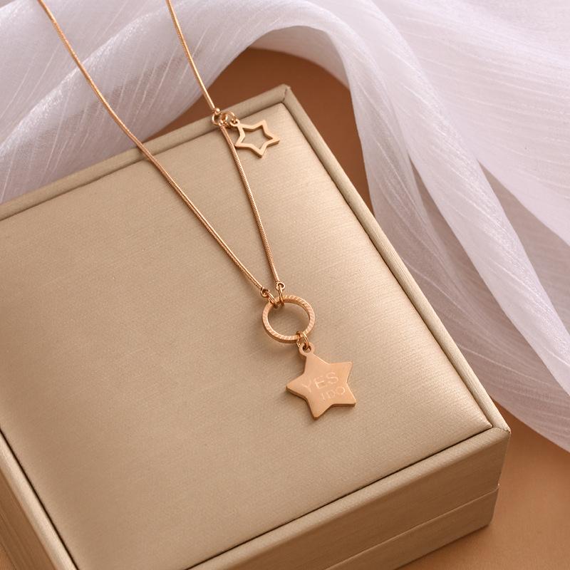 8828 stars titanium steel necklace-rose gold
