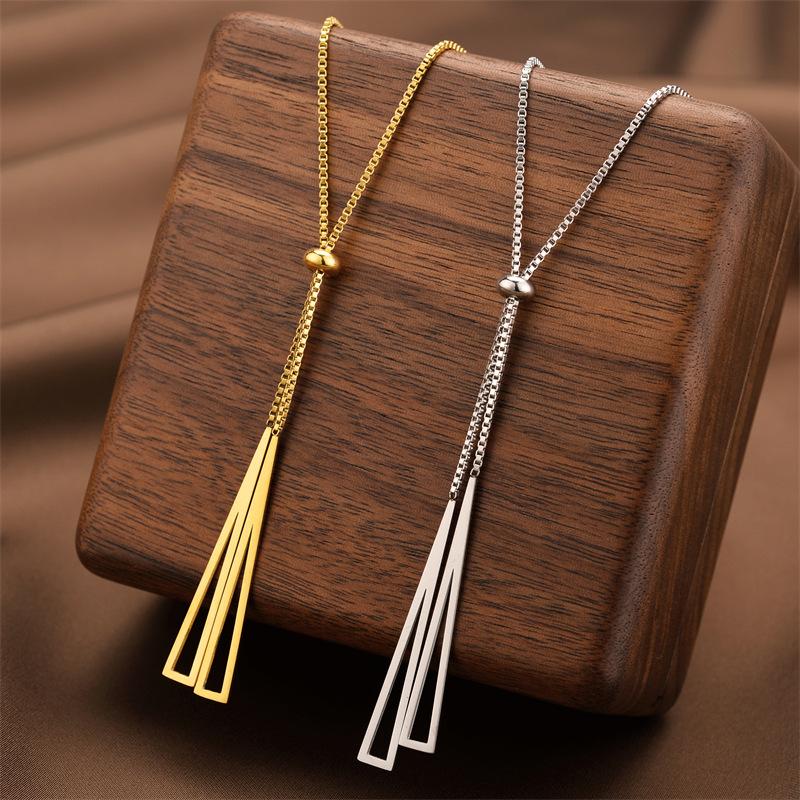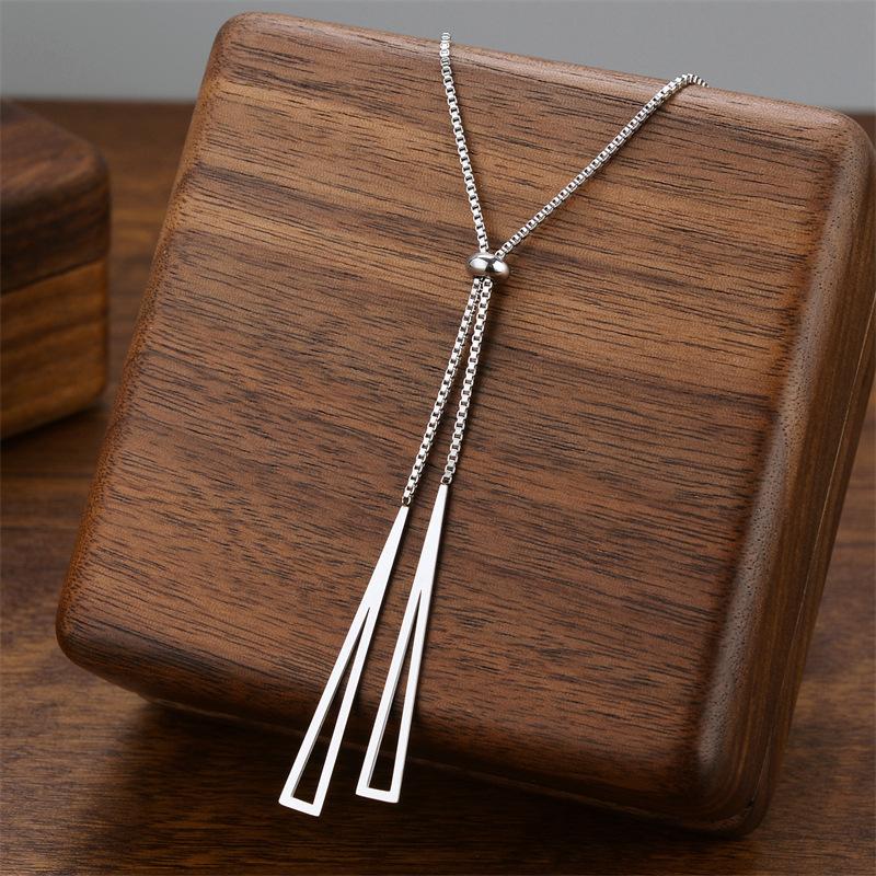 Collar de acero inoxidable transfronterizo con borlas de acero de titanio, exquisito colgante geométrico, diseño femenino, versátil, moderno y sencillo, cadena de clavícula femenina.