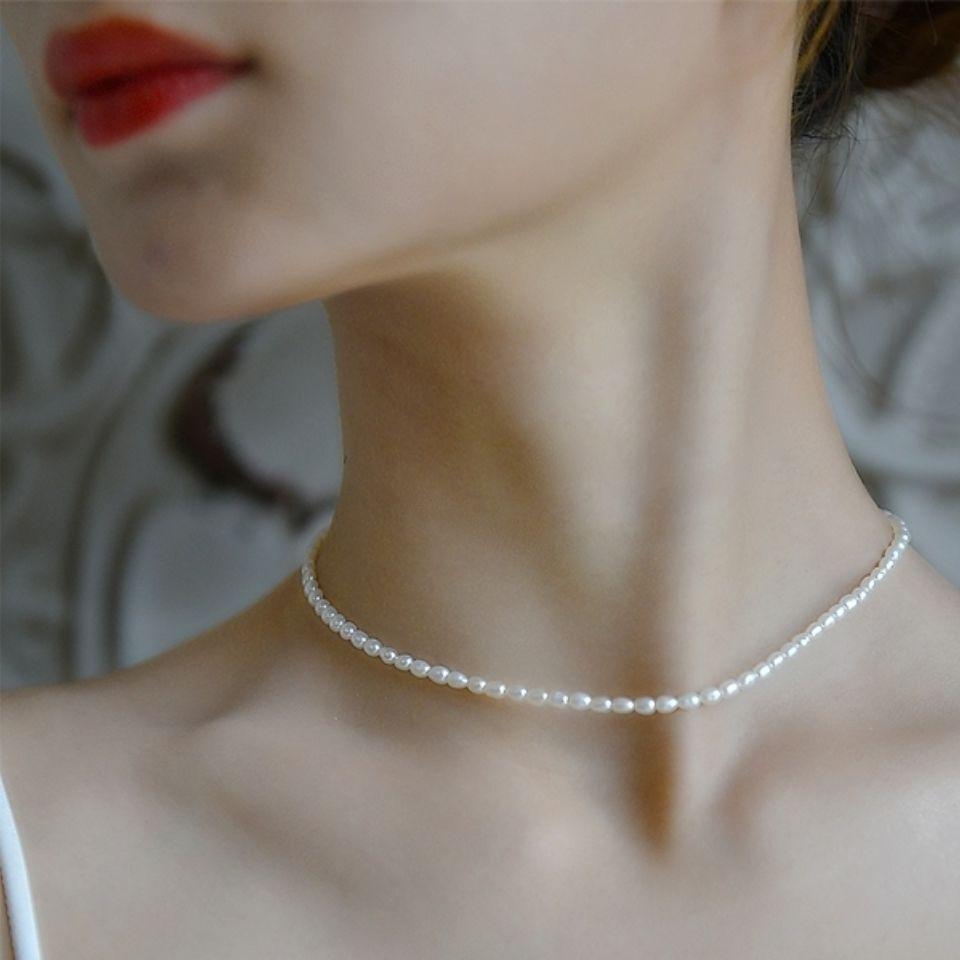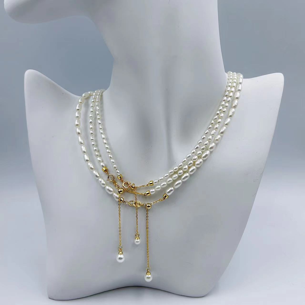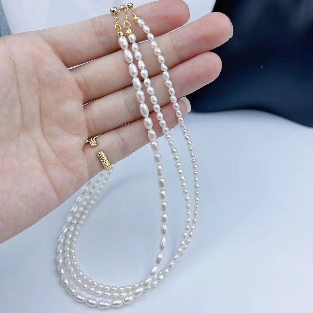 Small rice baby Pearl adjustable clavicle chain natural fresh water treasure
