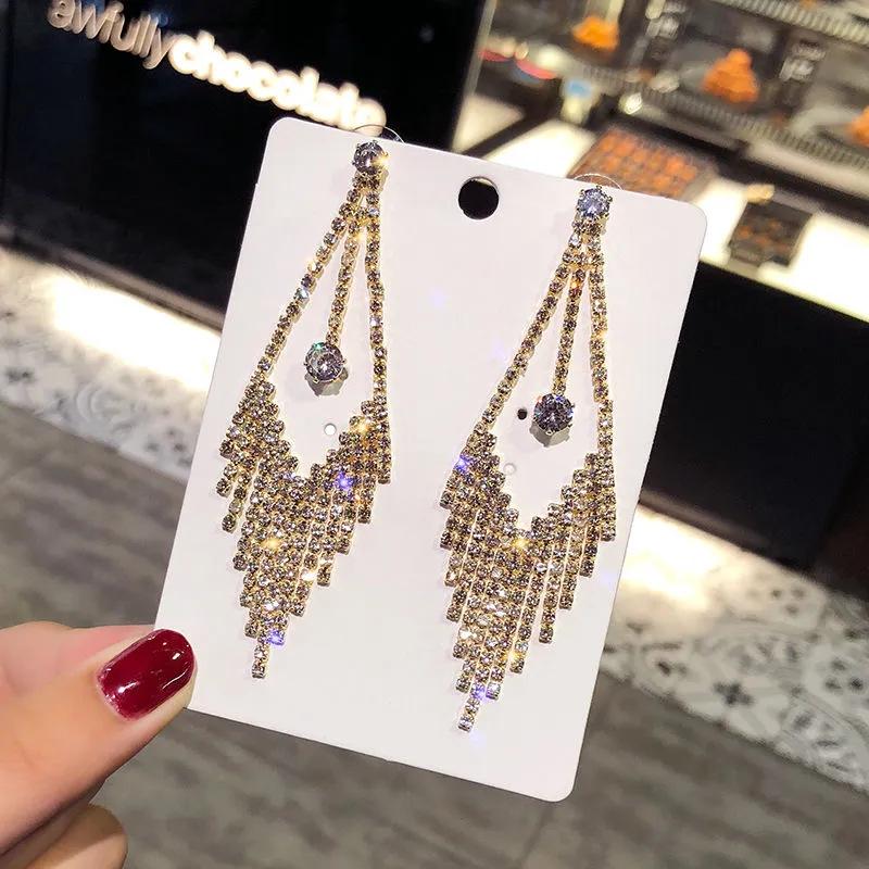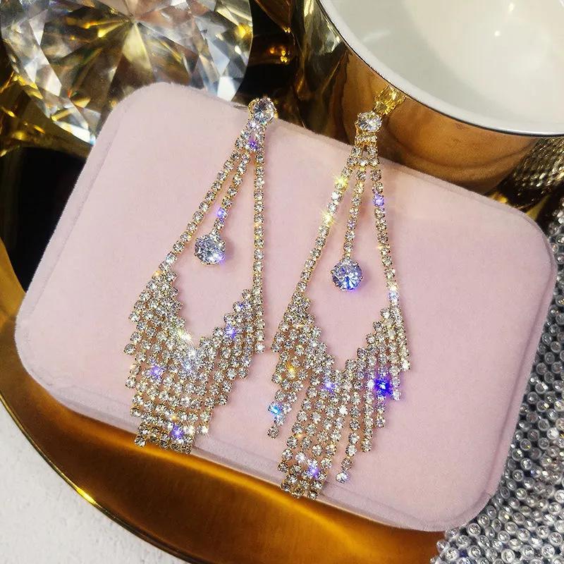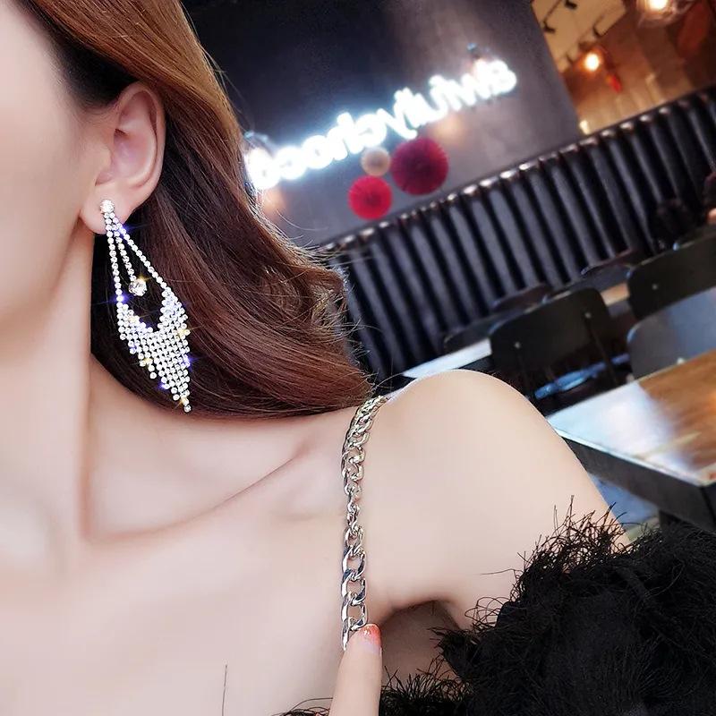 Oferta Especial Nuevos Aretes de Borlas Múltiples con Pedrería Estilo Europeo y Americano para Mujer, Elegantes y Versátiles, Aretes Exagerados, Estilo Largo, Aretes Adelgazantes