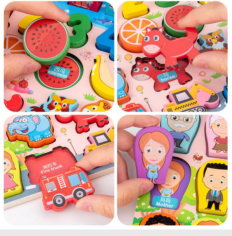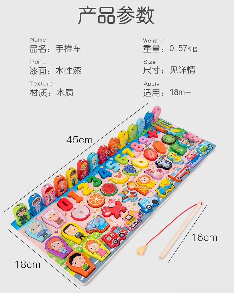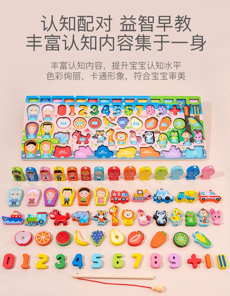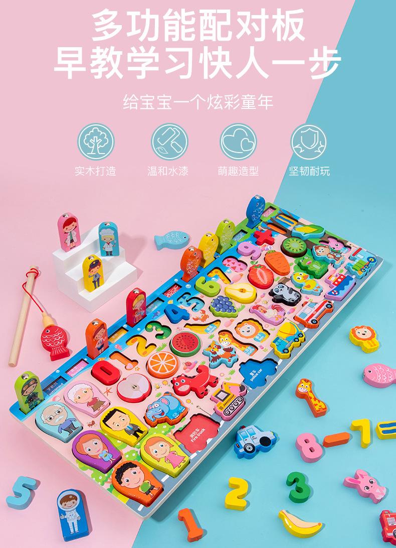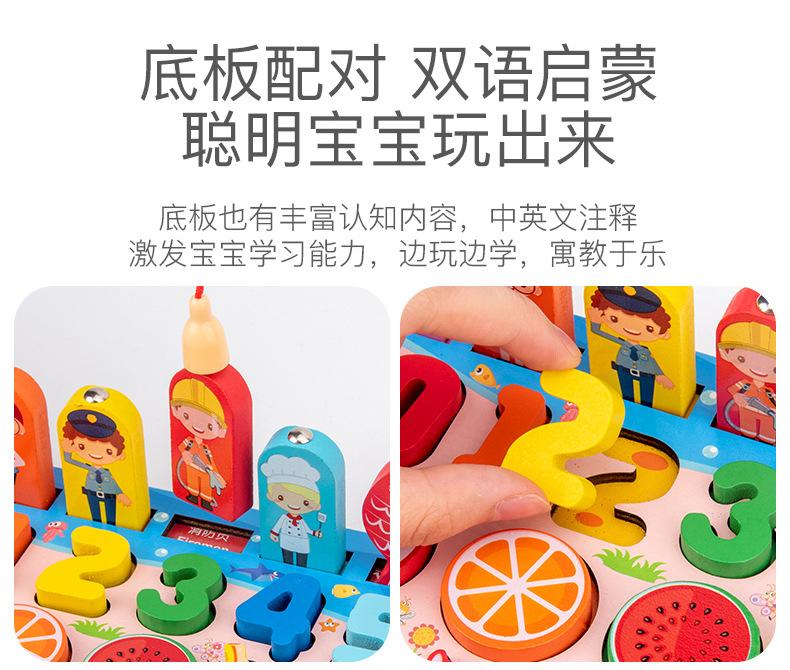 Rompecabezas digital multifuncional de madera siete en uno para niños, hermoso tablero logarítmico, bloques de construcción, juguetes educativos