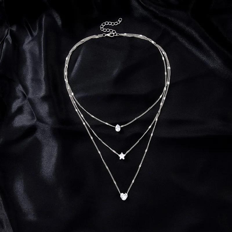 Joyería Europea y Americana Collar de Moda con Colgante de Estrella de Cinco Puntas de Circonia de Múltiples Capas Moda para Mujer Venta al por Mayor para Mujer Perla Gente Moderna
