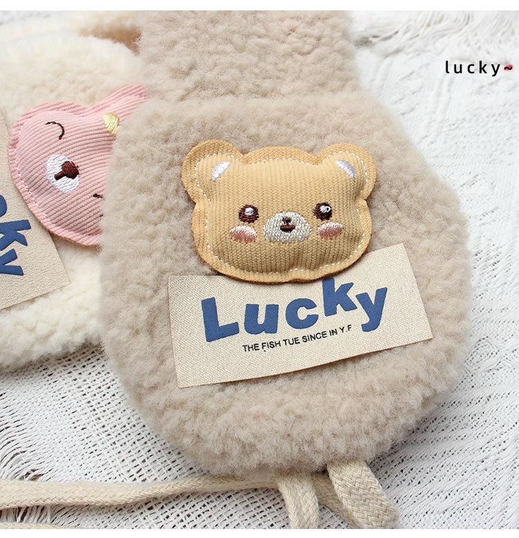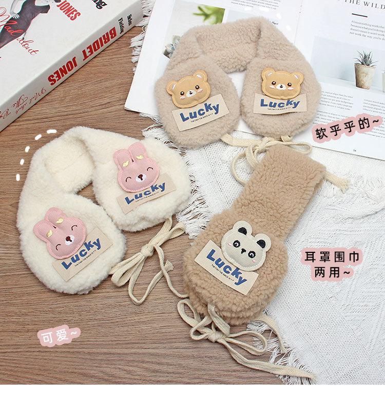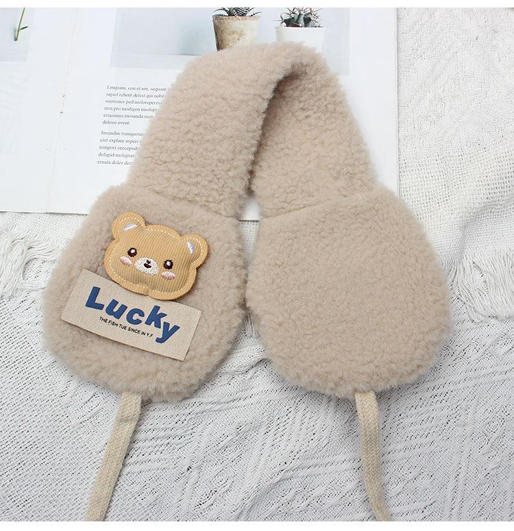 Orejeras de felpa para niños, orejeras de cuello tipo bufanda, de doble uso, de invierno, gruesas, cálidas, lindas orejeras anticongelantes con forma de oso de la suerte
