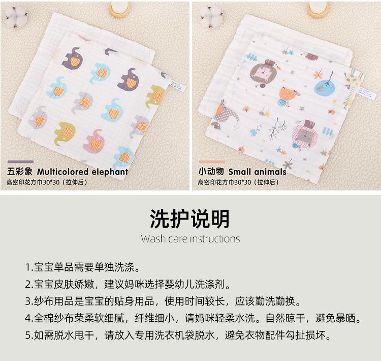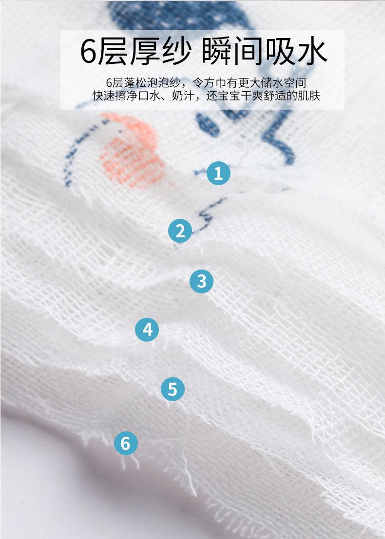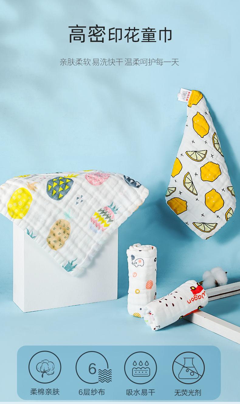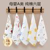 Toalla para niños gasa de algodón de seis capas para lavar la cara toalla para bebé toalla para bebé recién nacido alta densidad caricatura pañuelo pequeño