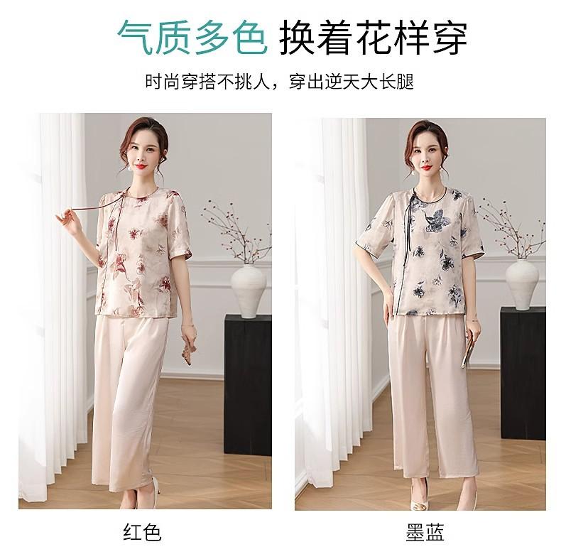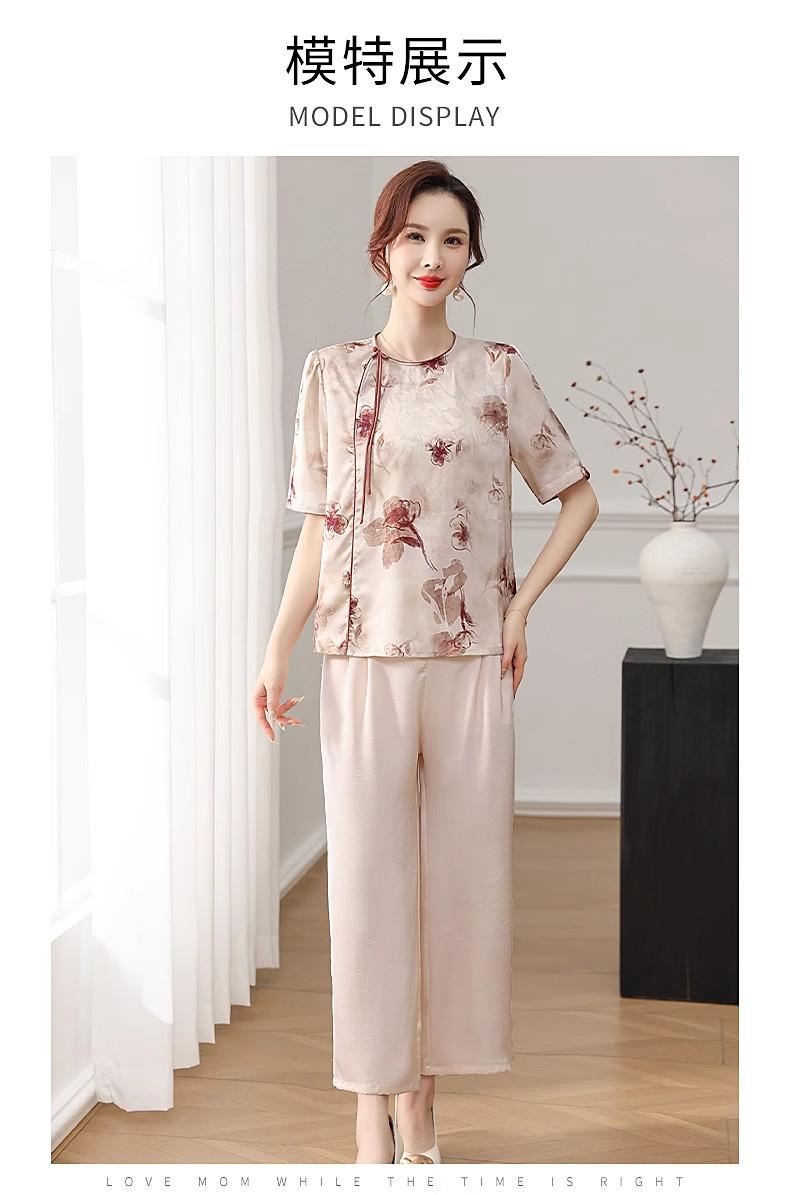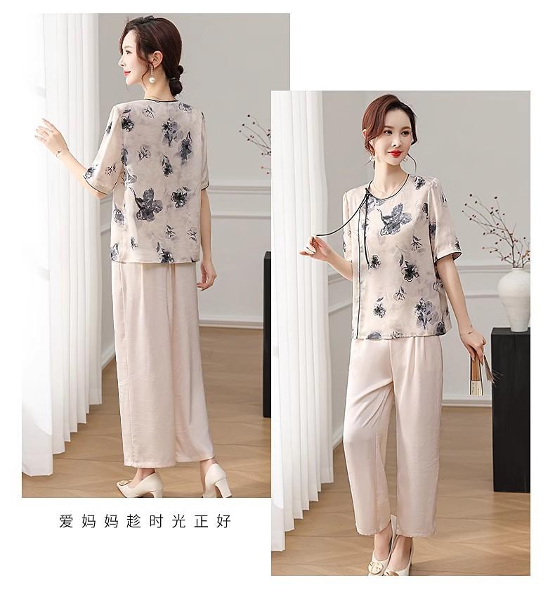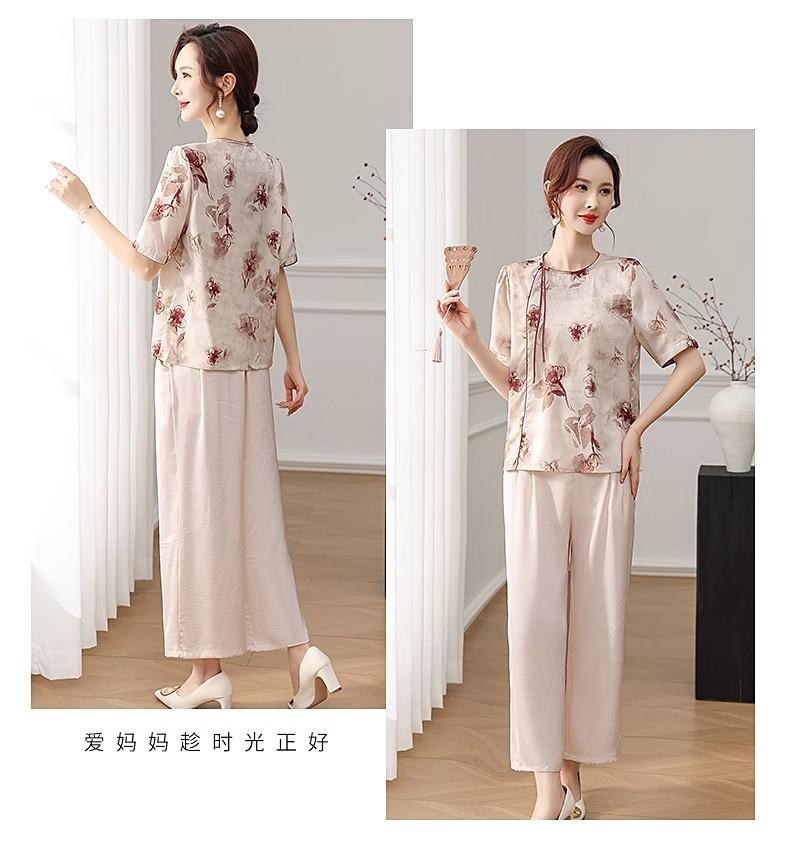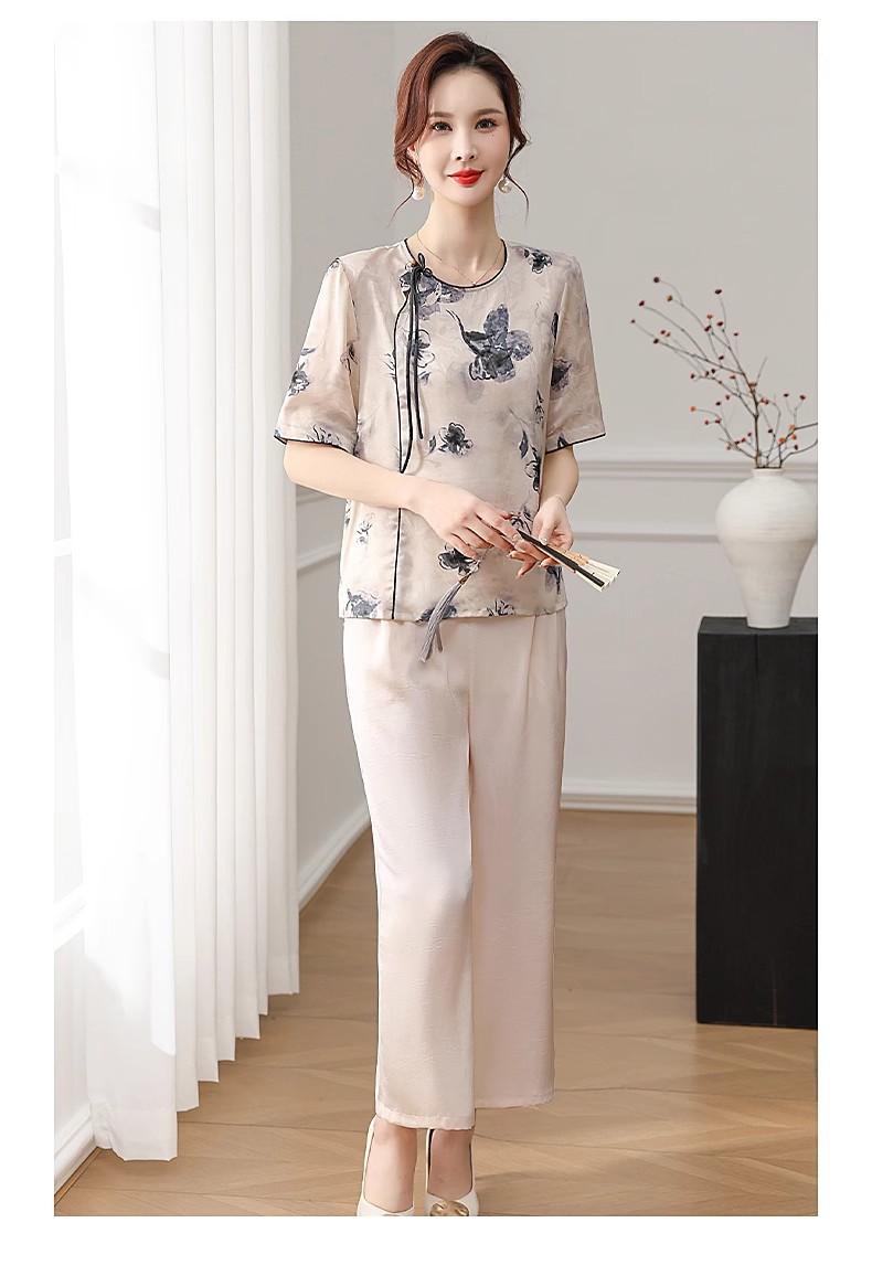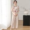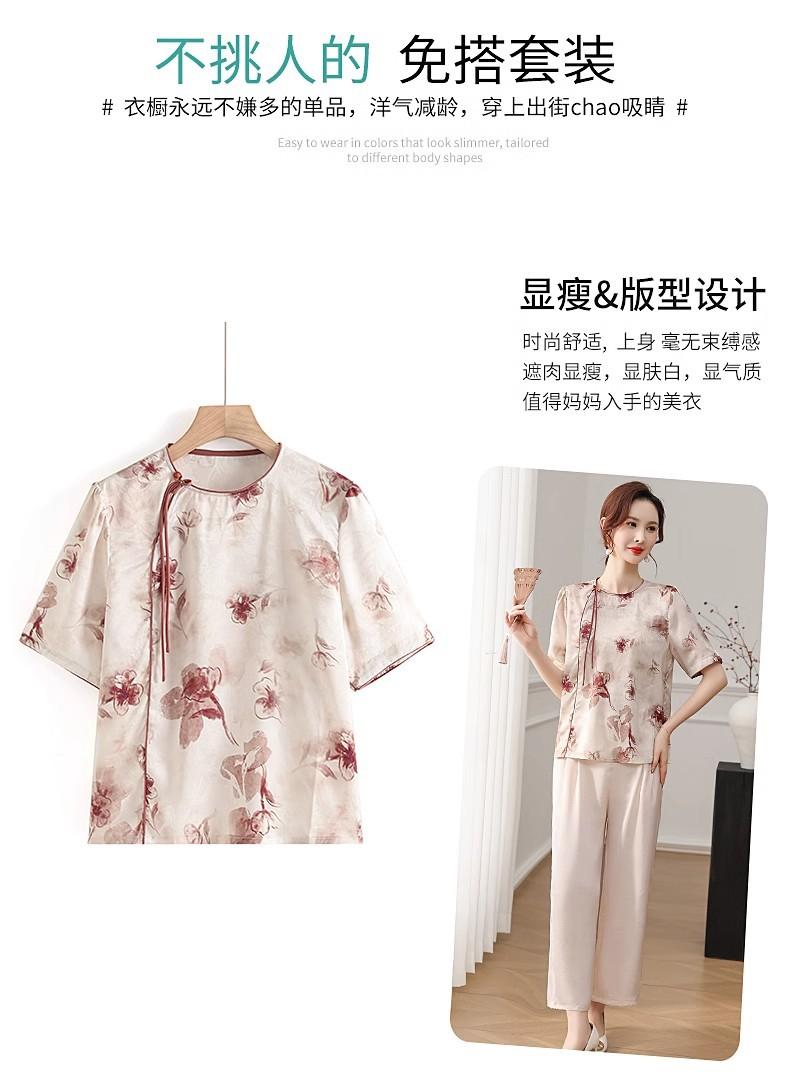 Camiseta de gasa de moda de verano para mamá, 2024, nueva camiseta de manga corta para mujer, estilo occidental, estilo chino, camisa pequeña
