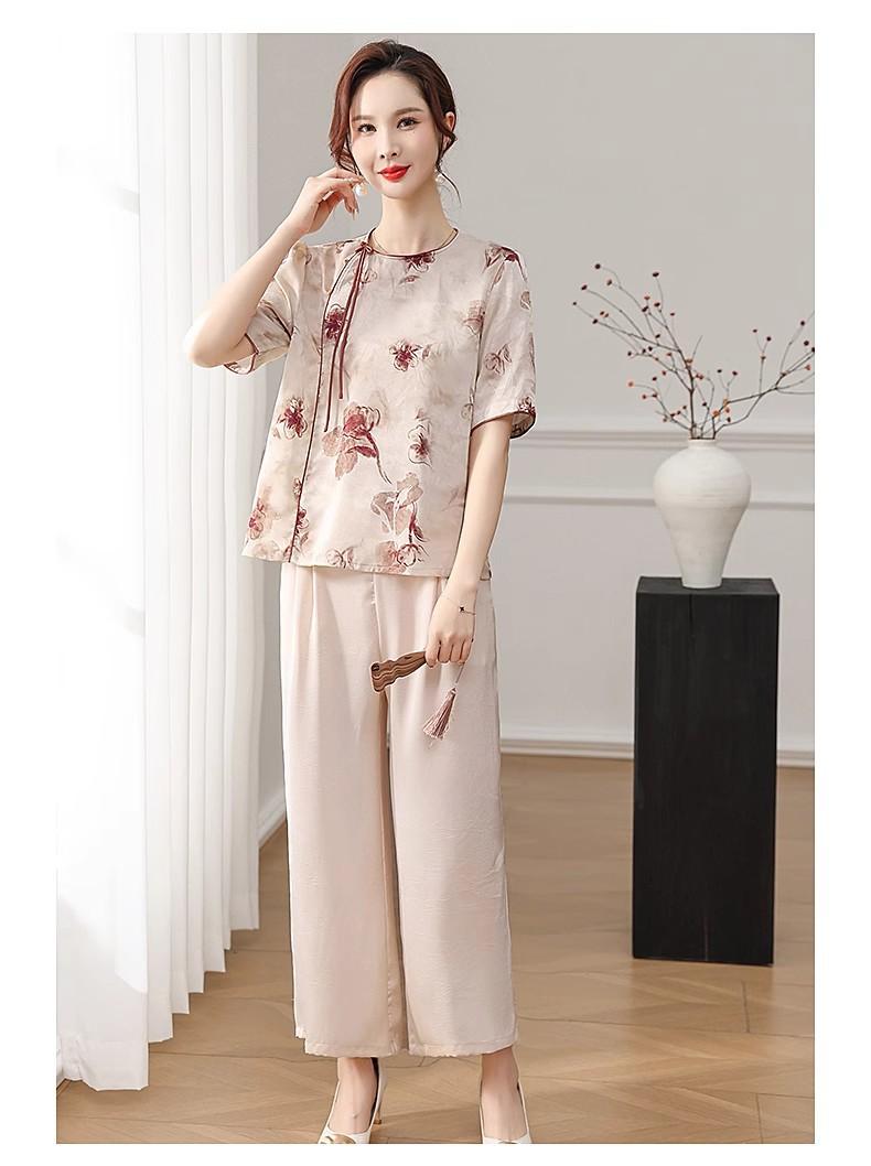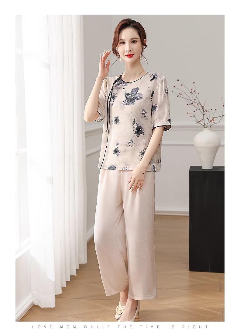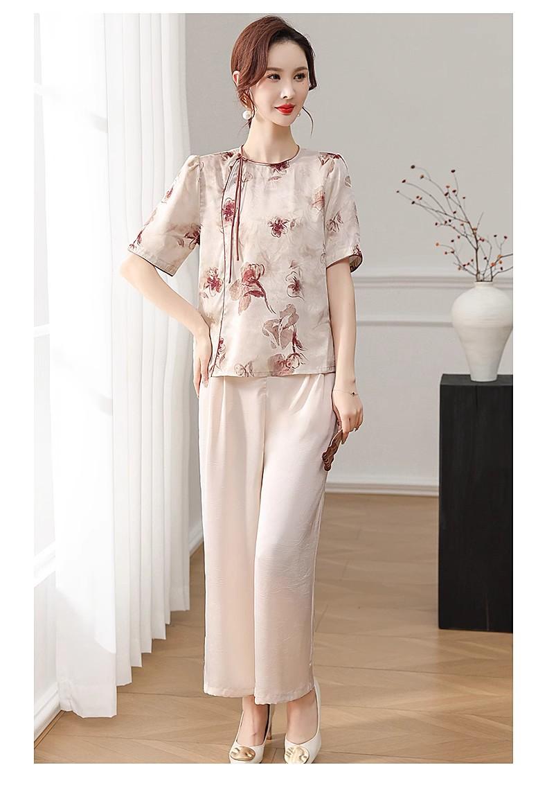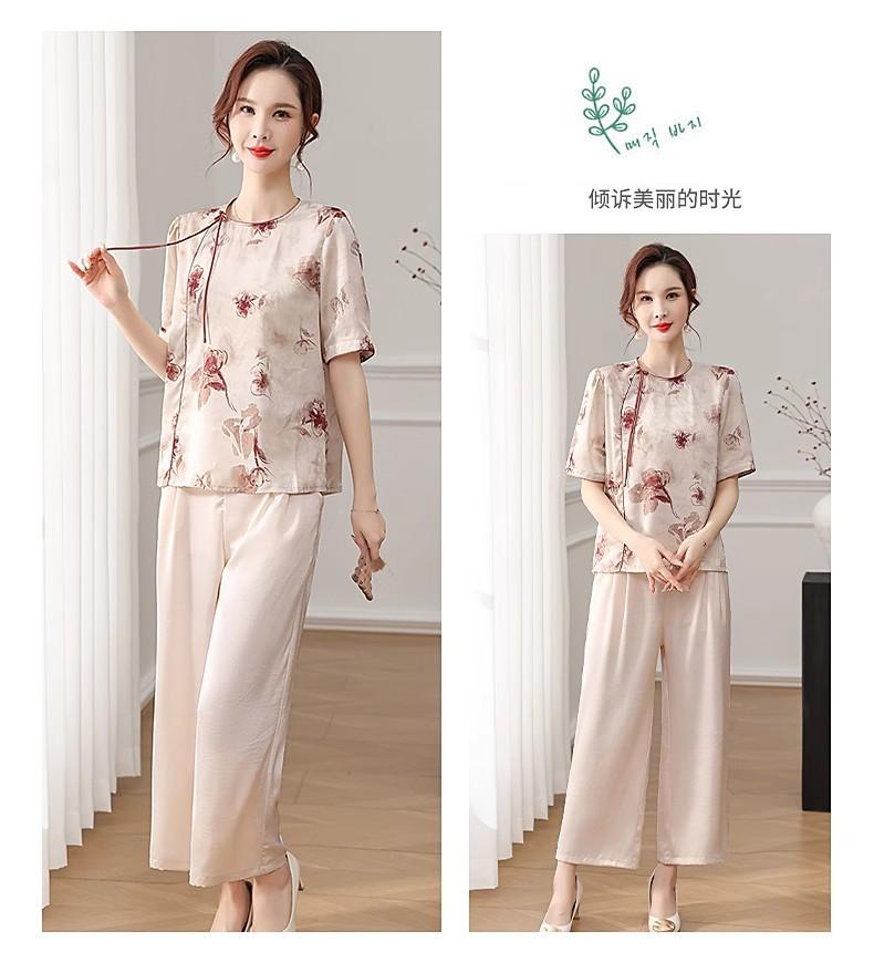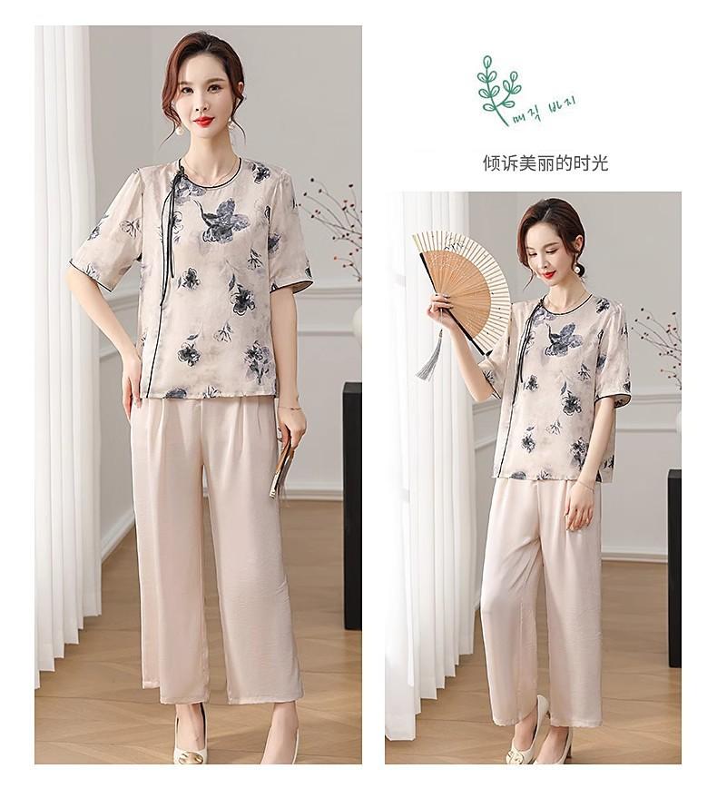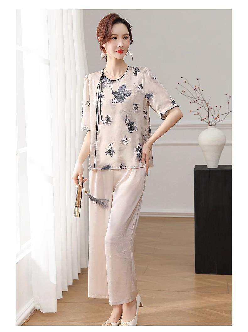 Camiseta de gasa de moda de verano para mamá, 2024, nueva camiseta de manga corta para mujer, estilo occidental, estilo chino, camisa pequeña