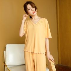 Pijama de algodón y seda para mujer con cuello en V de moda, nuevo de verano para mujer, pantalón de manga corta, traje fino para estar en casa que se puede usar afuera, mujer