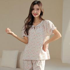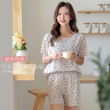 Versión coreana de ropa de casa de algodón puro para mujer verano 2022 floral fresco delgado manga corta gasa pijama mujer verano conjunto de shorts