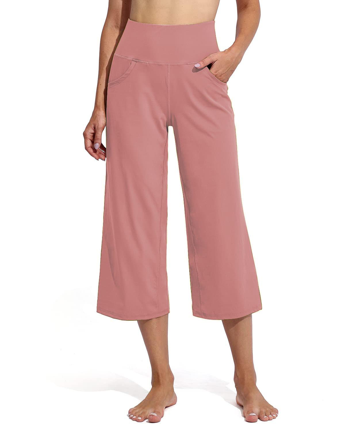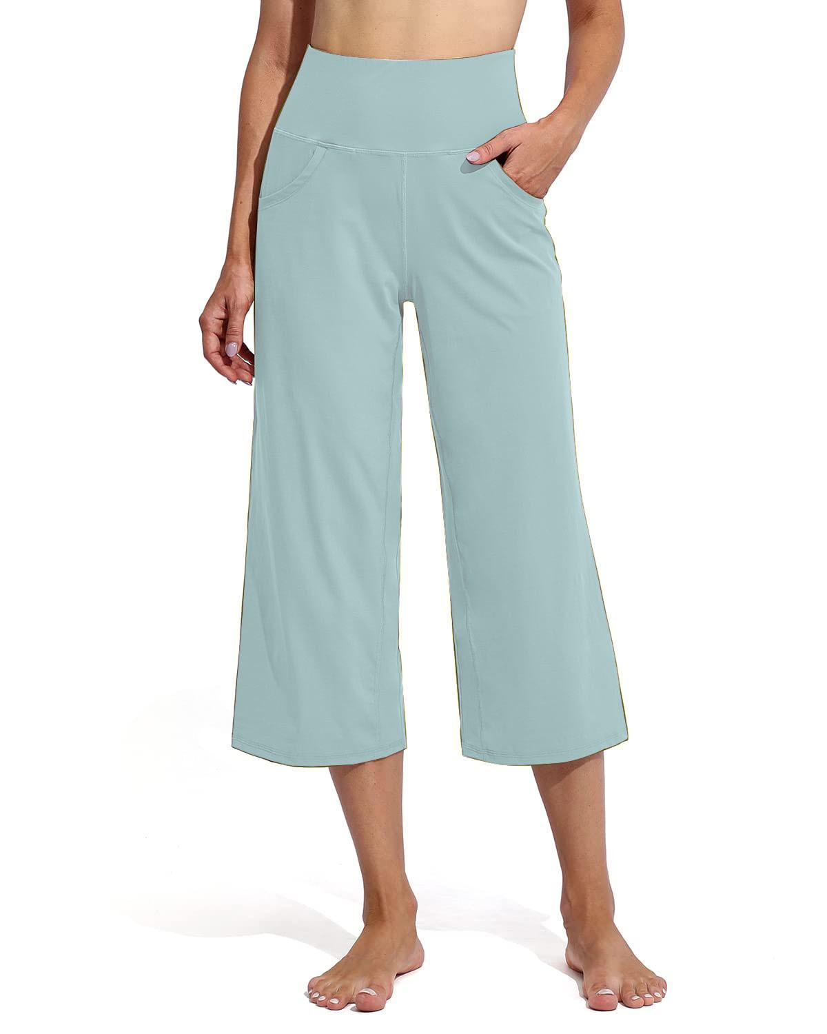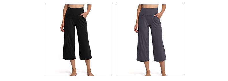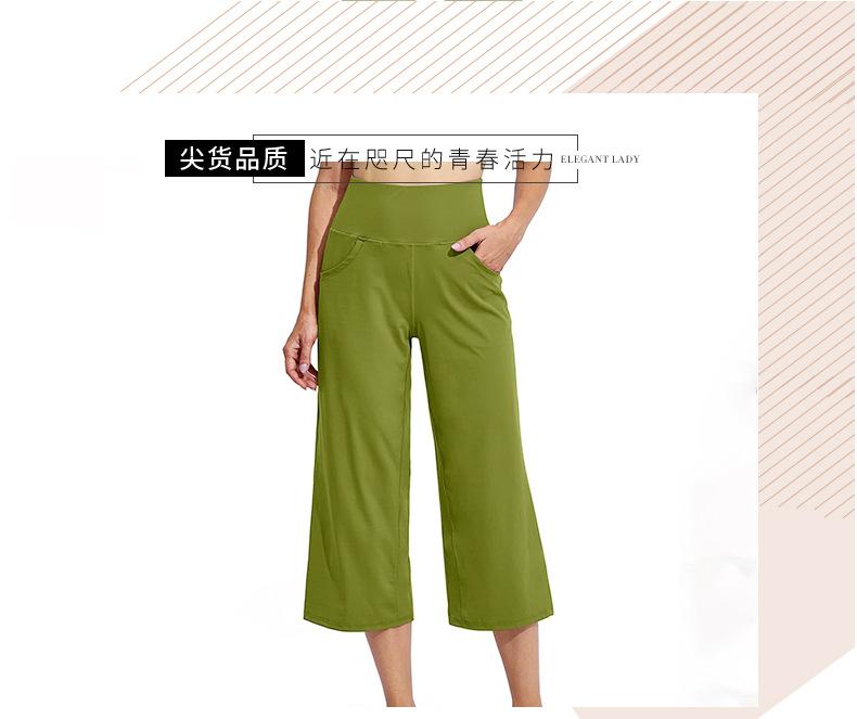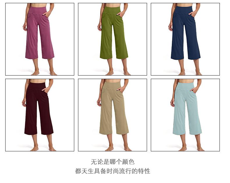Pantalones Recortados de Yoga Acampanados para Mujer de Verano Europeos y Americanos de Cintura Alta Levanta Caderas Sueltos de Pierna Ancha para Fitness Correr