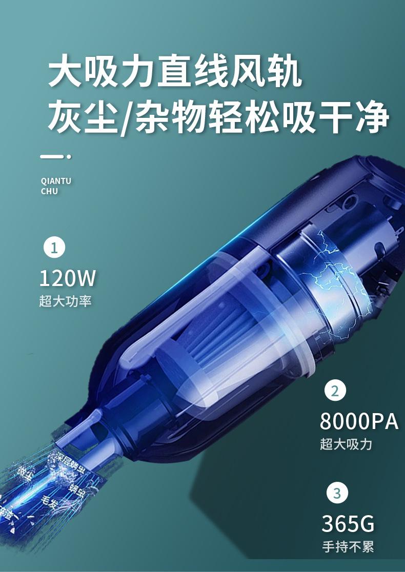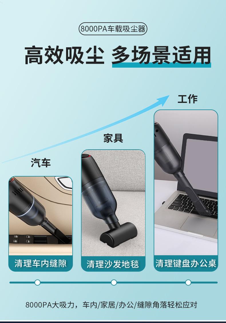Aspiradora de mano inalámbrica pequeña para coche, de doble propósito, con bomba de aire y motor súper sin escobillas.