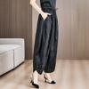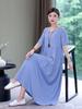Vestido de seda de algodón de alta gama nuevo de 2023, prenda exterior de verano de moda para madres de mediana edad, falda larga con estampado de bolsillo para lucir esbelta.