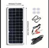 Lista de empaque: 1*Panel solar 1*Controlador solar (opcional) 1*Cargador de coche 1*Pinza para batería 2*Clip de escalada 4*Ventosa 1*Manual de instrucciones generales