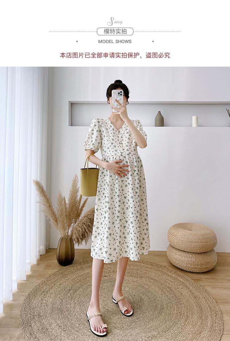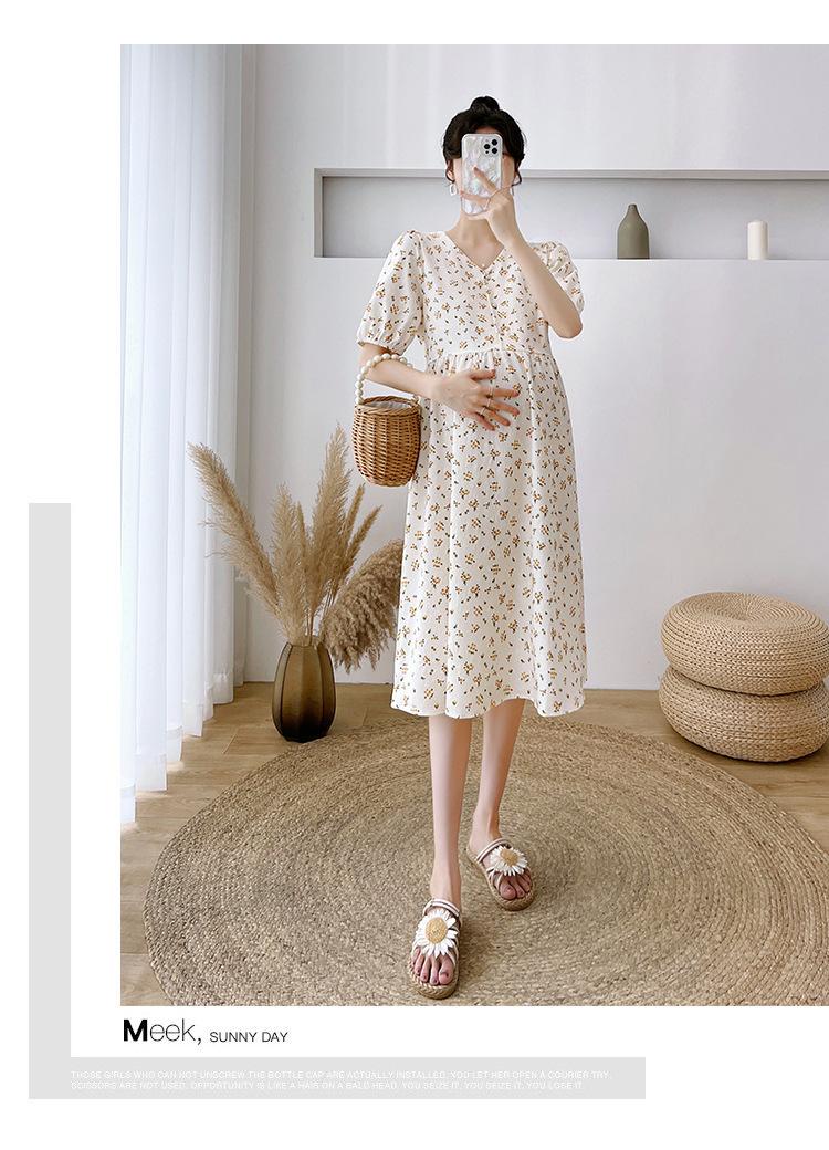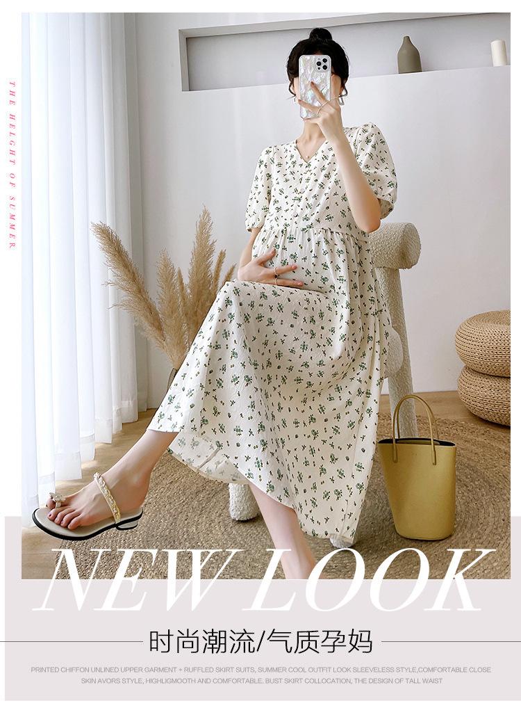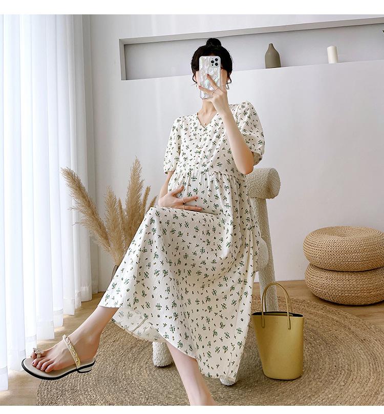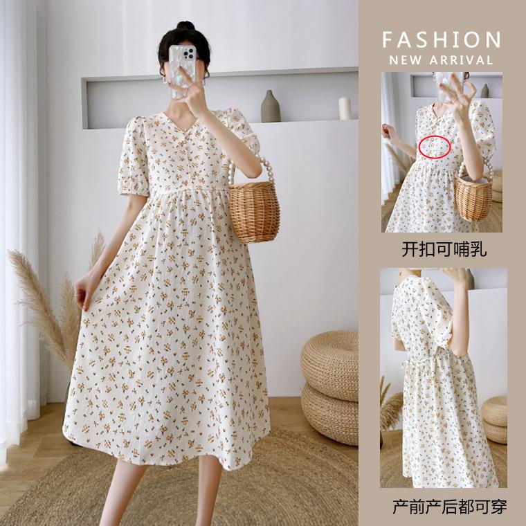 Vestido de embarazo y lactancia de doble propósito, primavera y verano, falda larga floral, vestido de verano de alta moda para embarazadas.