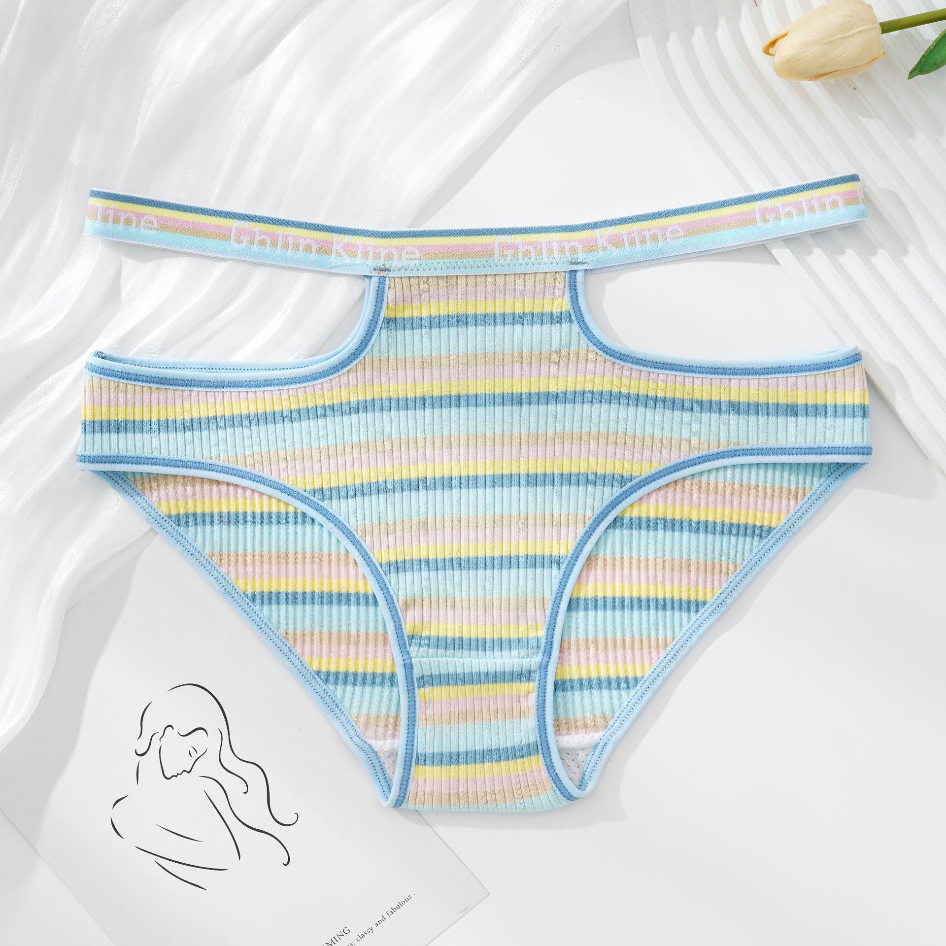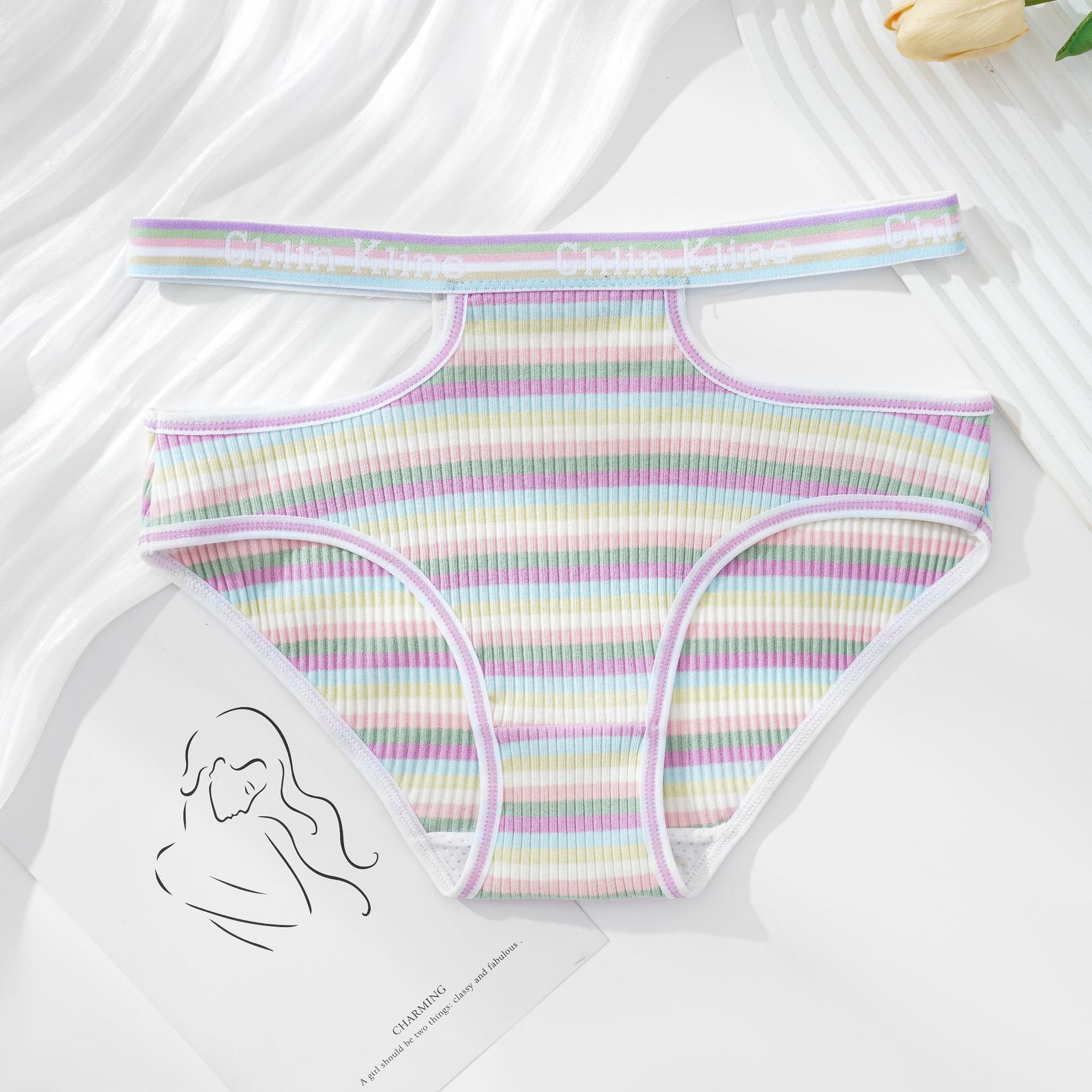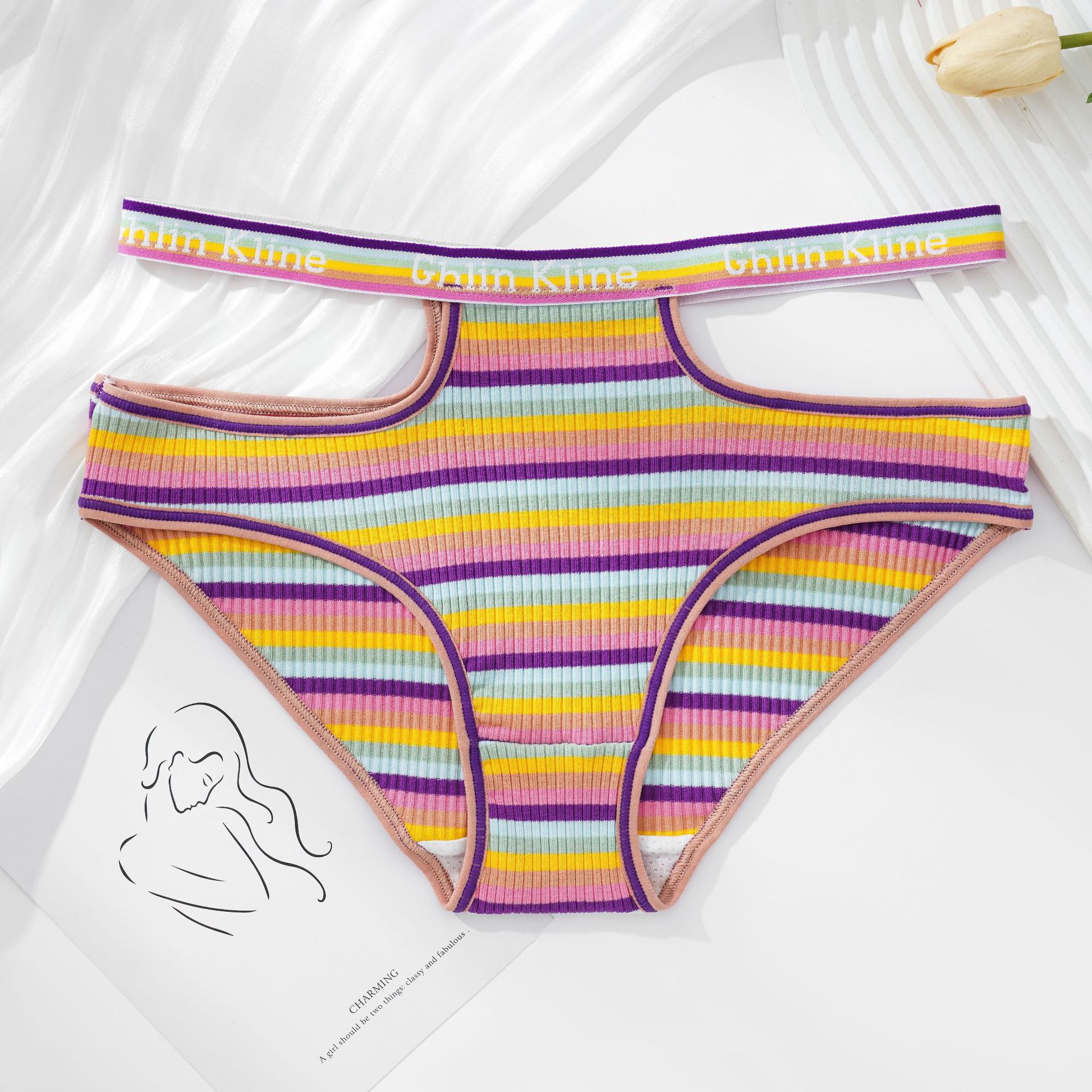 Ropa interior de algodón de cintura media para mujer, dulce y picante, de neón, de verano, hueca, sexy, nueva.