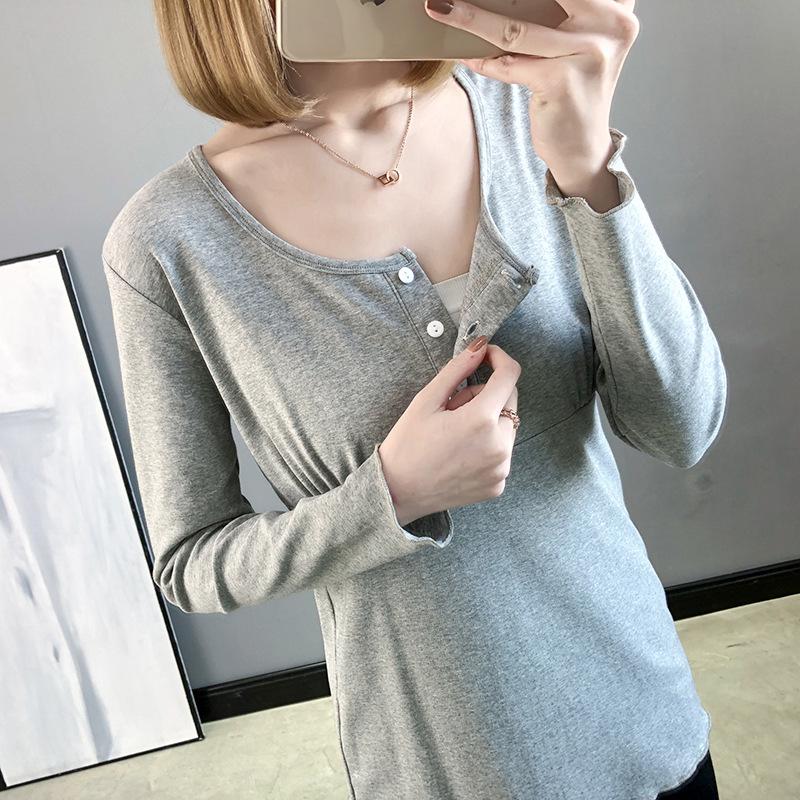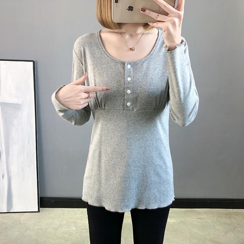 Ropa de maternidad modal posparto, ropa de lactancia, top de mujer, ropa exterior de manga larga, ropa de otoño, camisa de fondo, primavera y verano