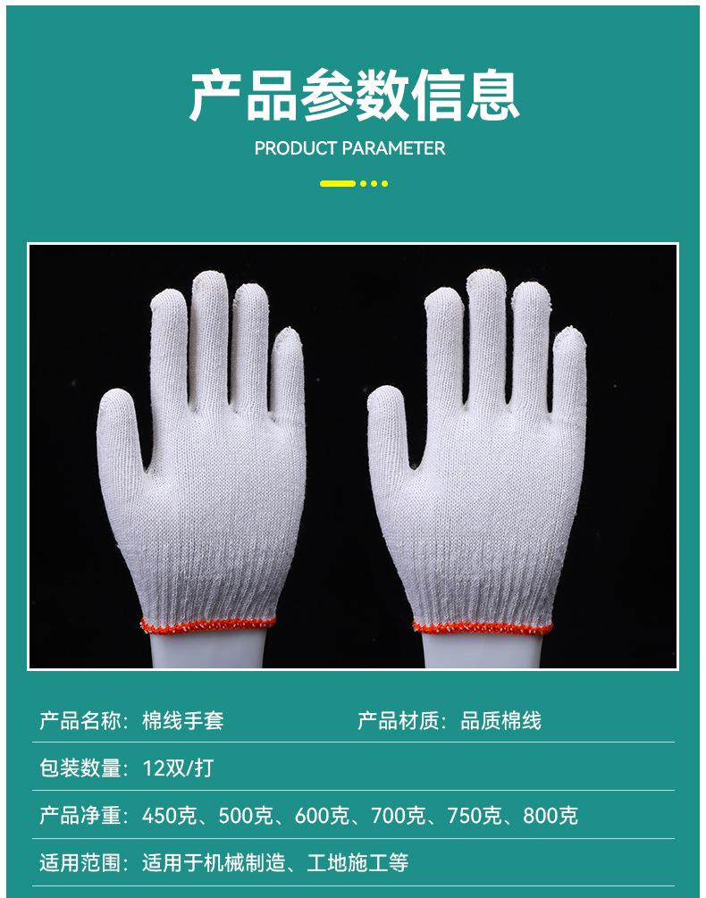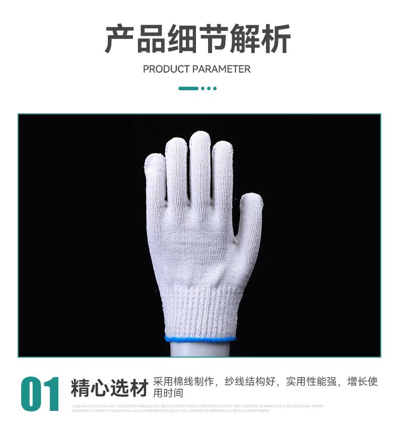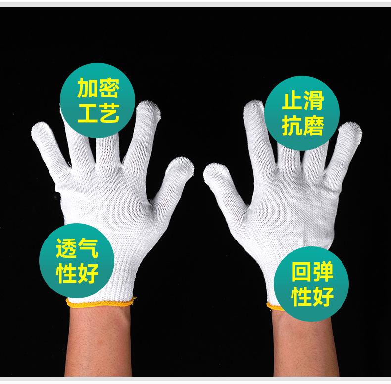 Guantes de hilo de algodón al por mayor, guantes de hilo de nailon, resistentes al desgaste, antideslizantes, protección de hardware, guantes de hilo de protección laboral para trabajos de construcción.