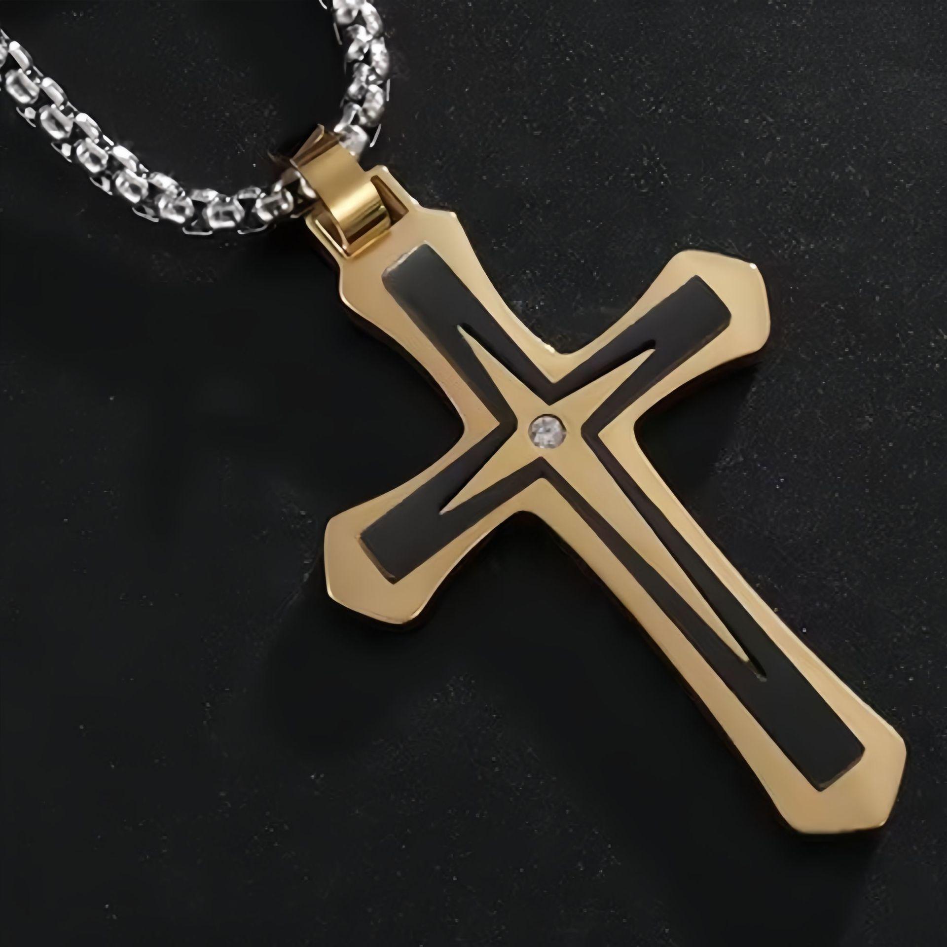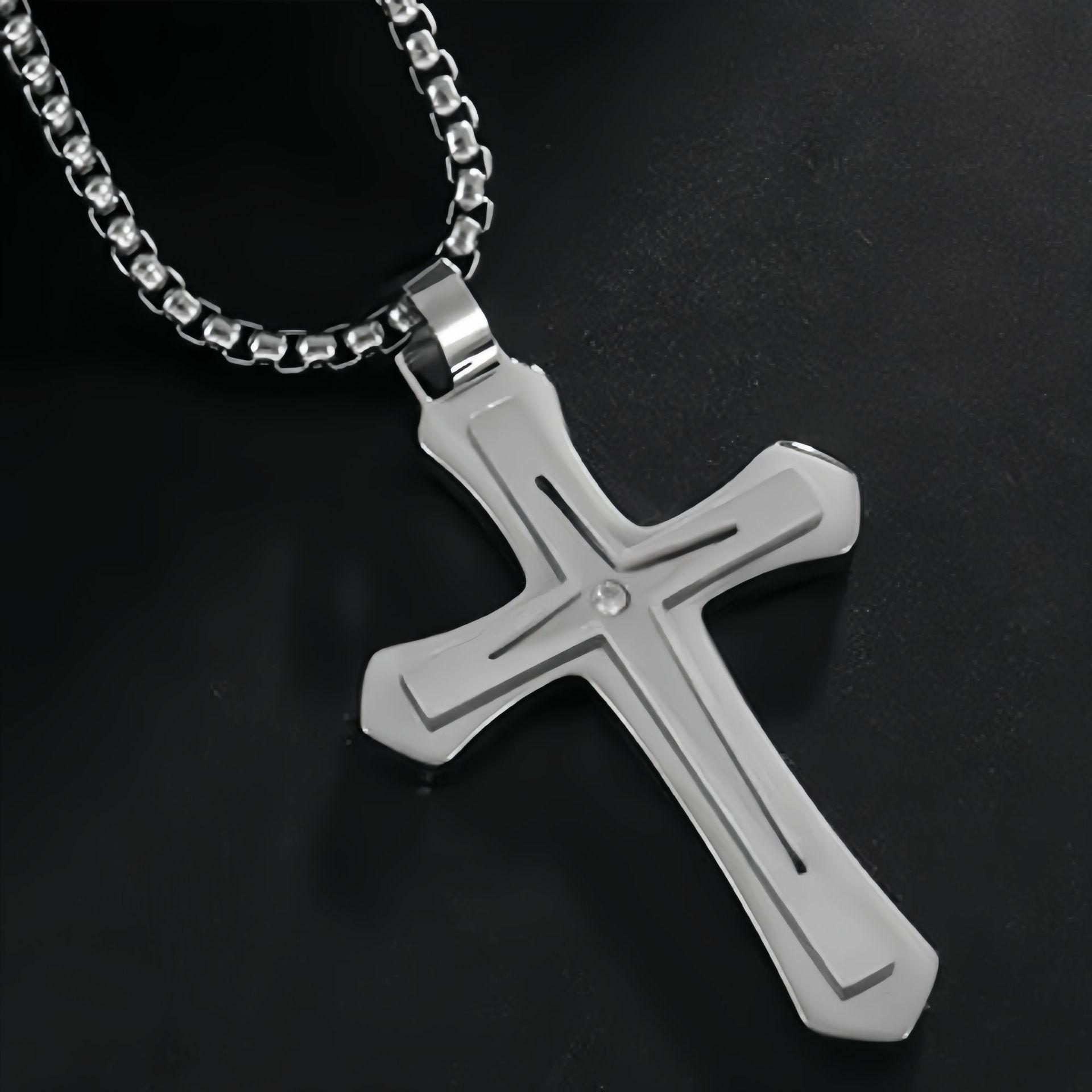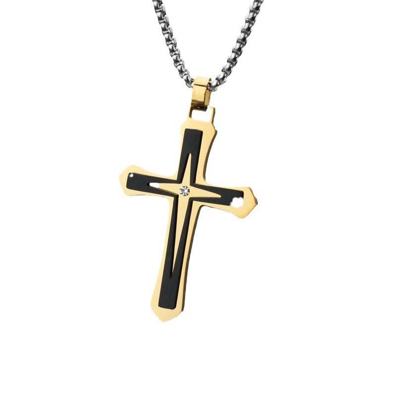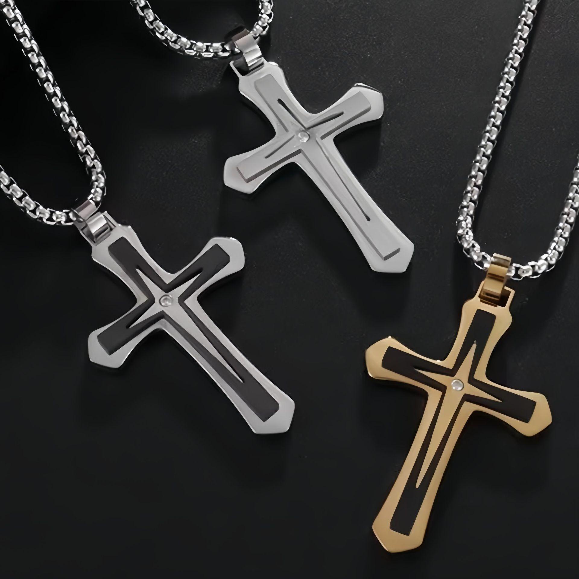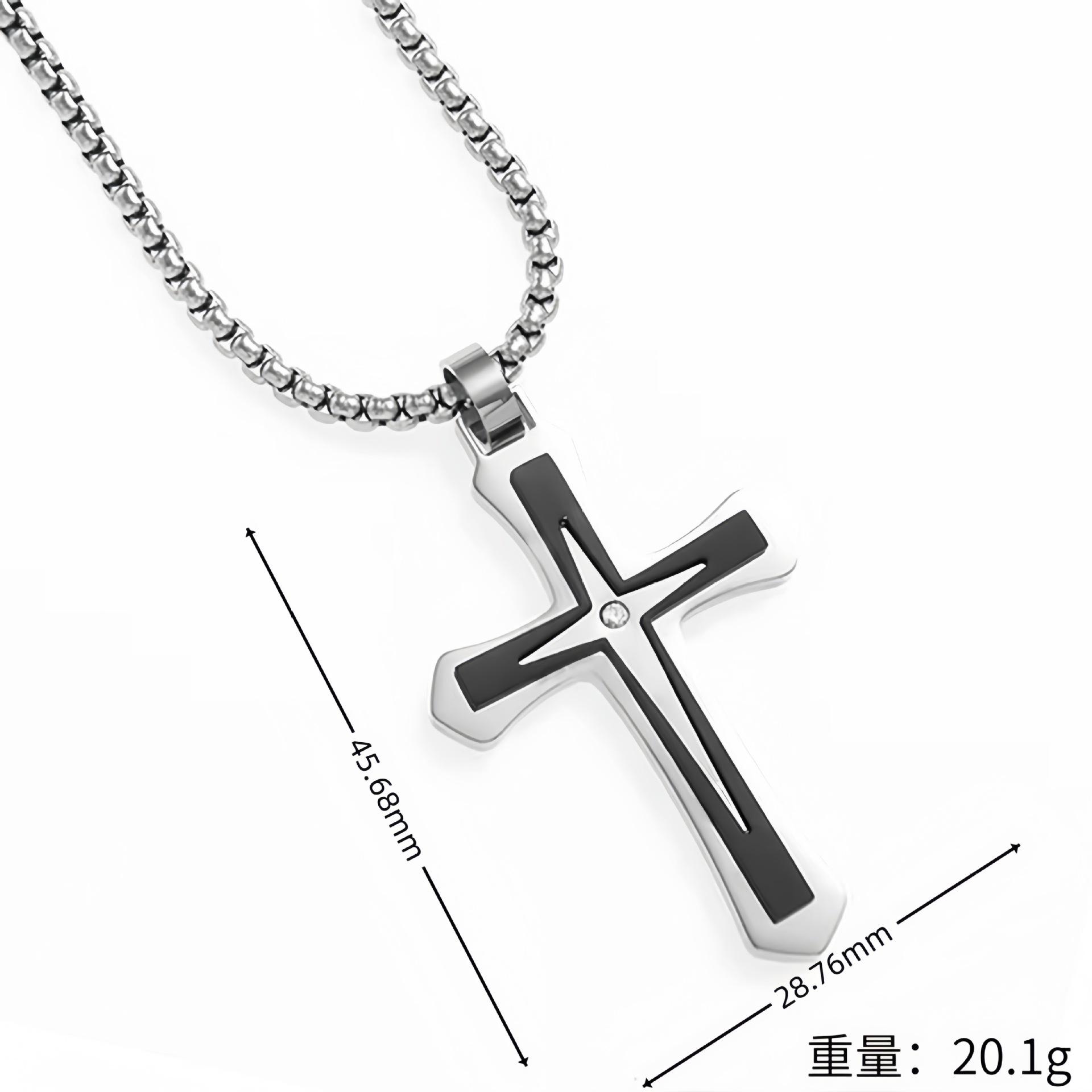 Collar de acero de titanio para hombre y mujer, colgante de cruz de diamantes de doble capa, estilo punk, hip-hop, sencillo y combinable, para Europa y América.
