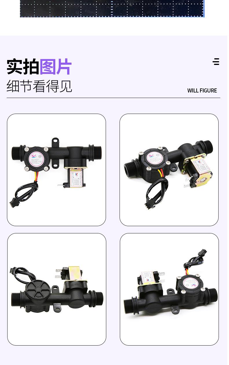 Sensor de Flujo de Agua Hall Máquina de Control de Agua de 4 Puntos Medidor de Flujo Hall Válvula Solenoide Medidor de Agua Multifunción Integrado