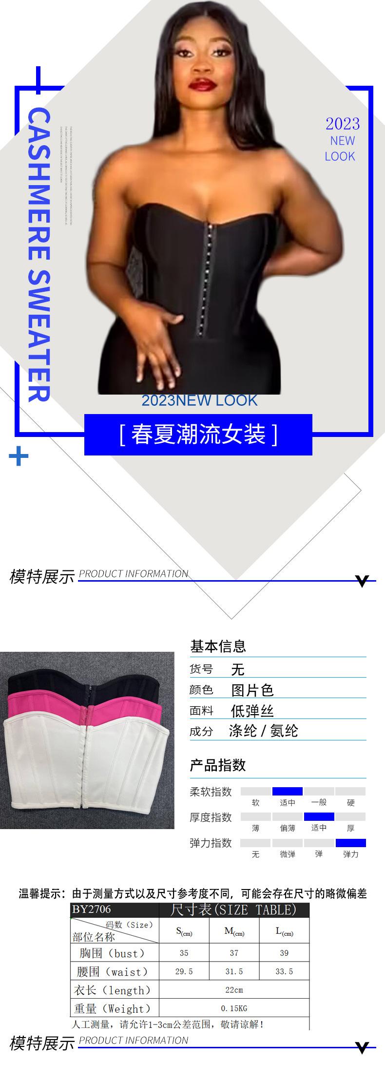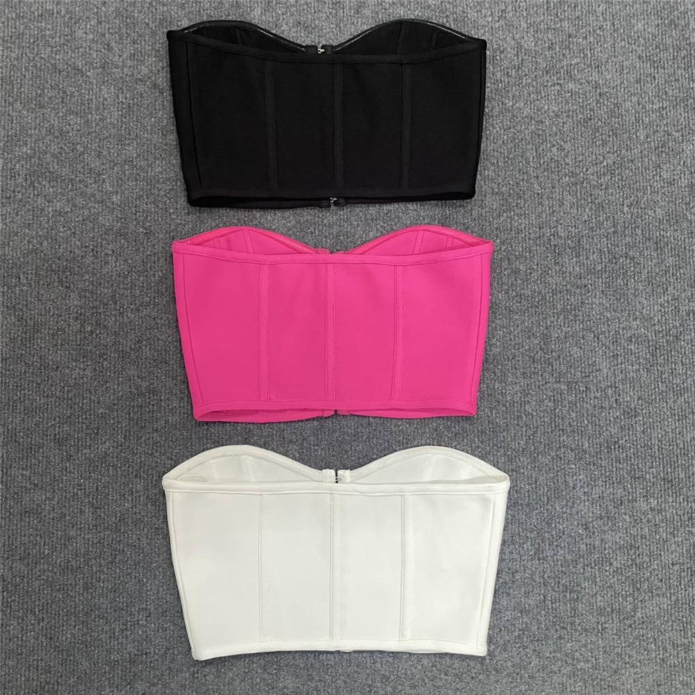 2023 Europa y los Estados Unidos transfronterizos nuevas mujeres sexy sin tirantes expuesto ombligo espina de pescado hombro cintura delgada vendaje pequeño top
