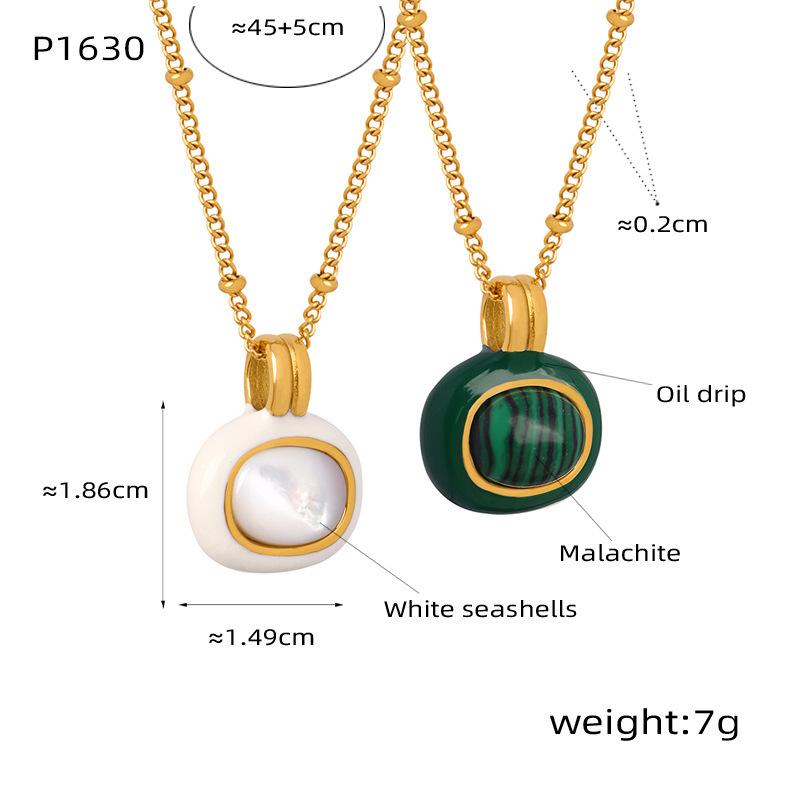 P379-Natural stone necklace -40 5cm, P1630-long golden white shell necklace -45 5cm, P1630-Long golden malachi...