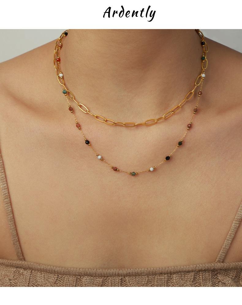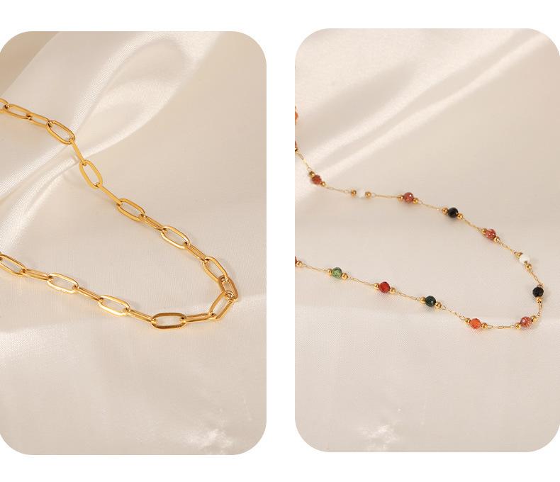 Collar con colgante de piedra natural chapado en oro y titanio, diseño de nicho personalizado simple, estilo europeo y americano, joyería apilada de moda para mujer