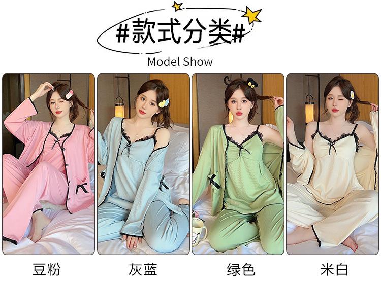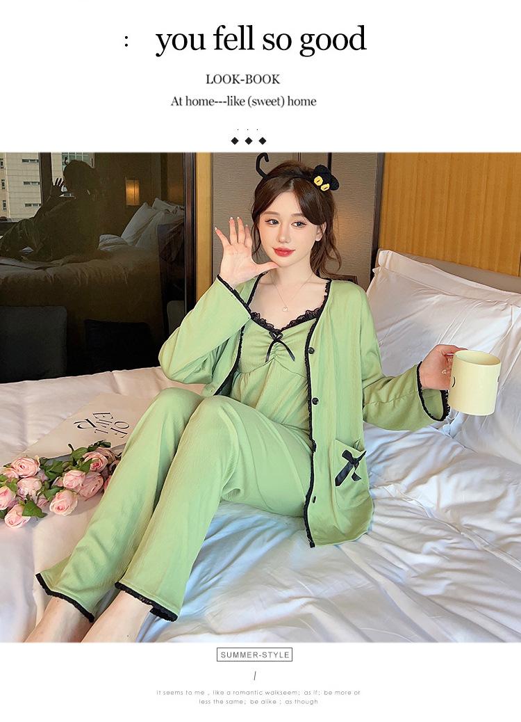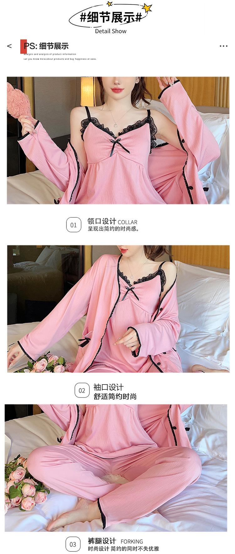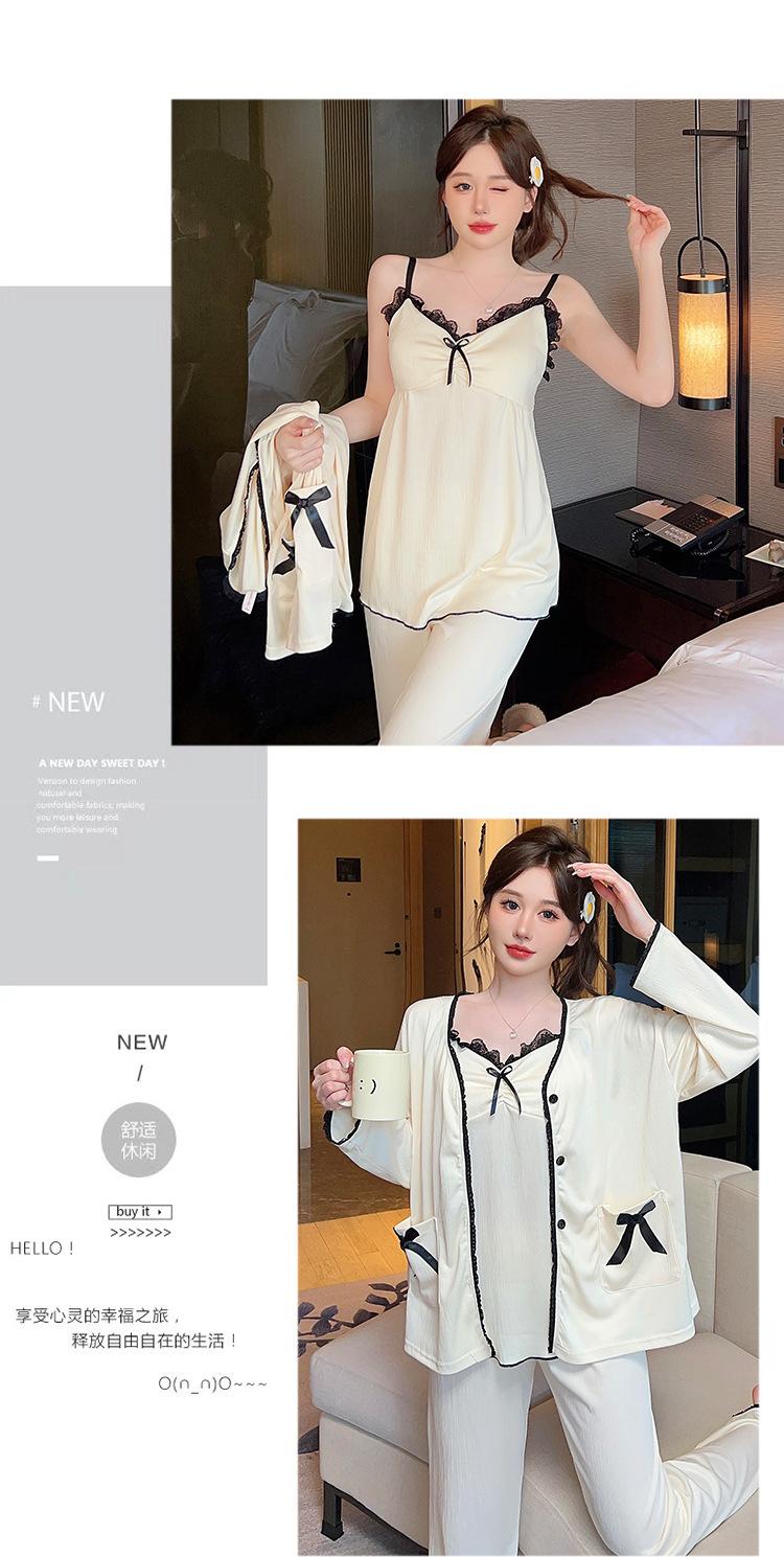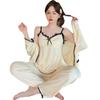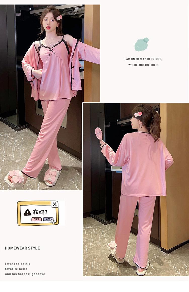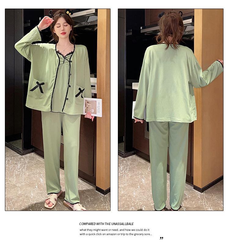 Pijama de mujer de primavera y otoño con tirantes finos y almohadilla para el pecho, pantalones de manga larga, talla grande 230 Jin, traje de tres piezas para el hogar
