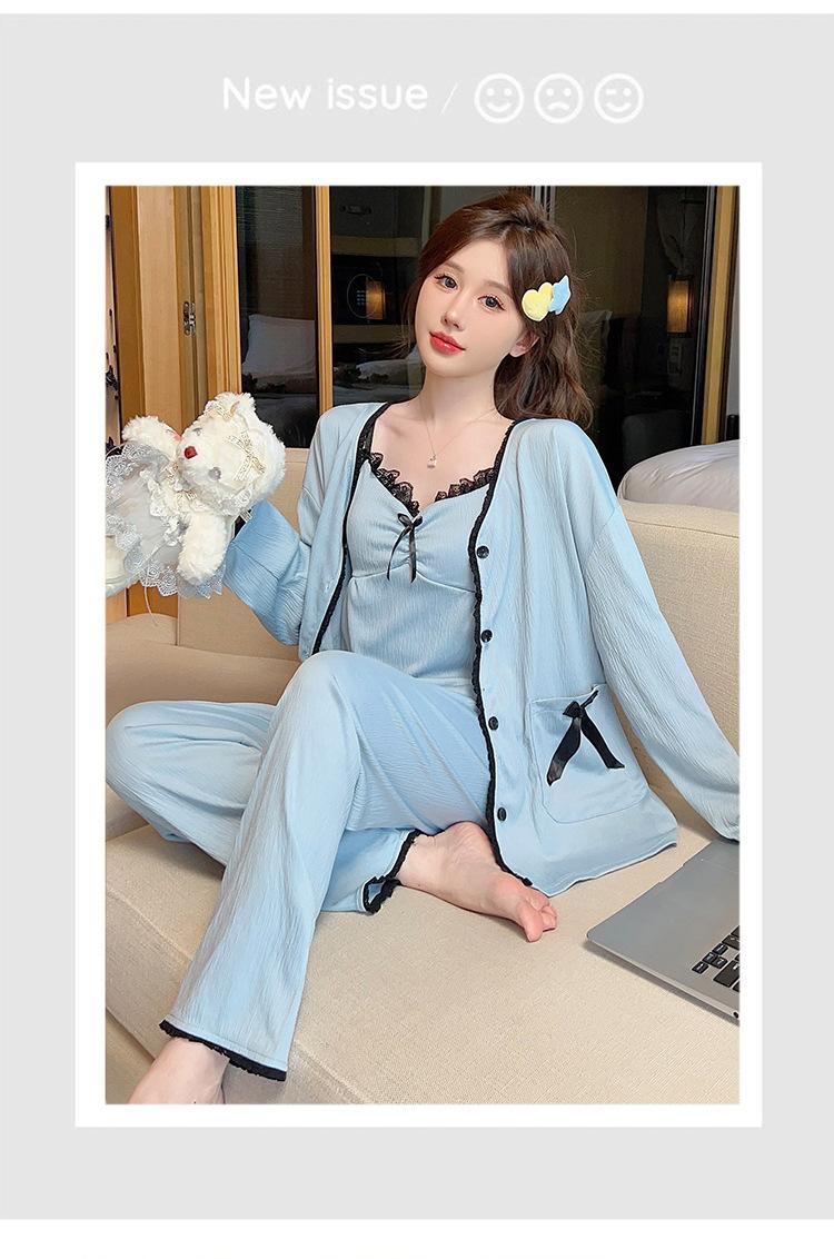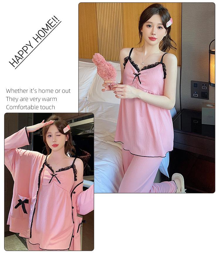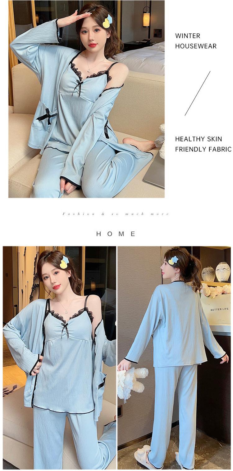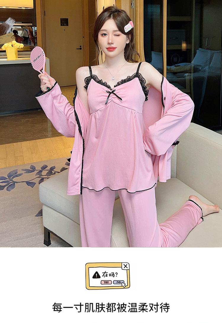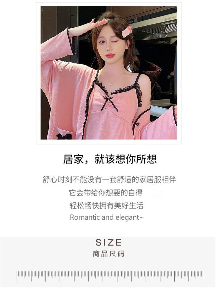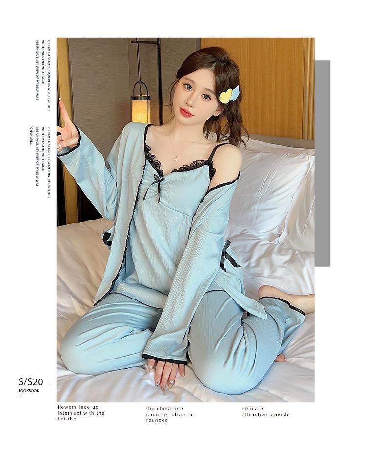 Pijama de mujer de primavera y otoño con tirantes finos y almohadilla para el pecho, pantalones de manga larga, talla grande 230 Jin, traje de tres piezas para el hogar
