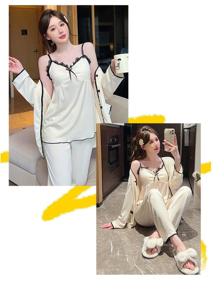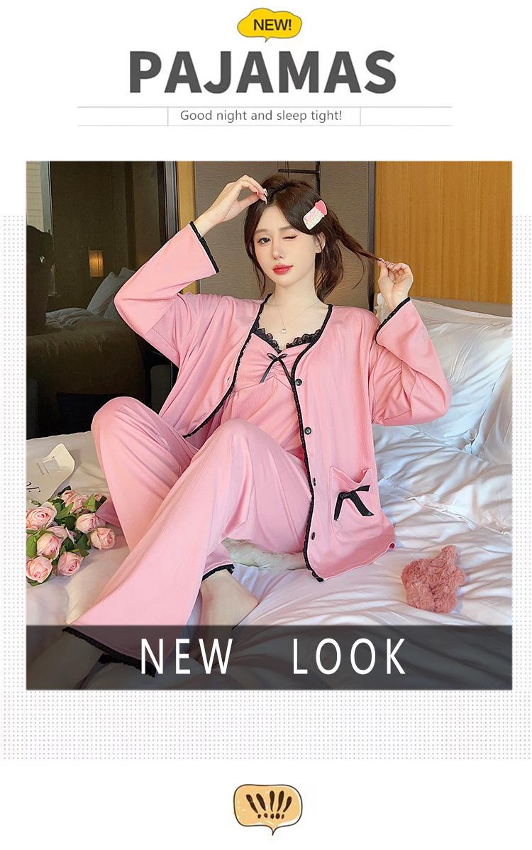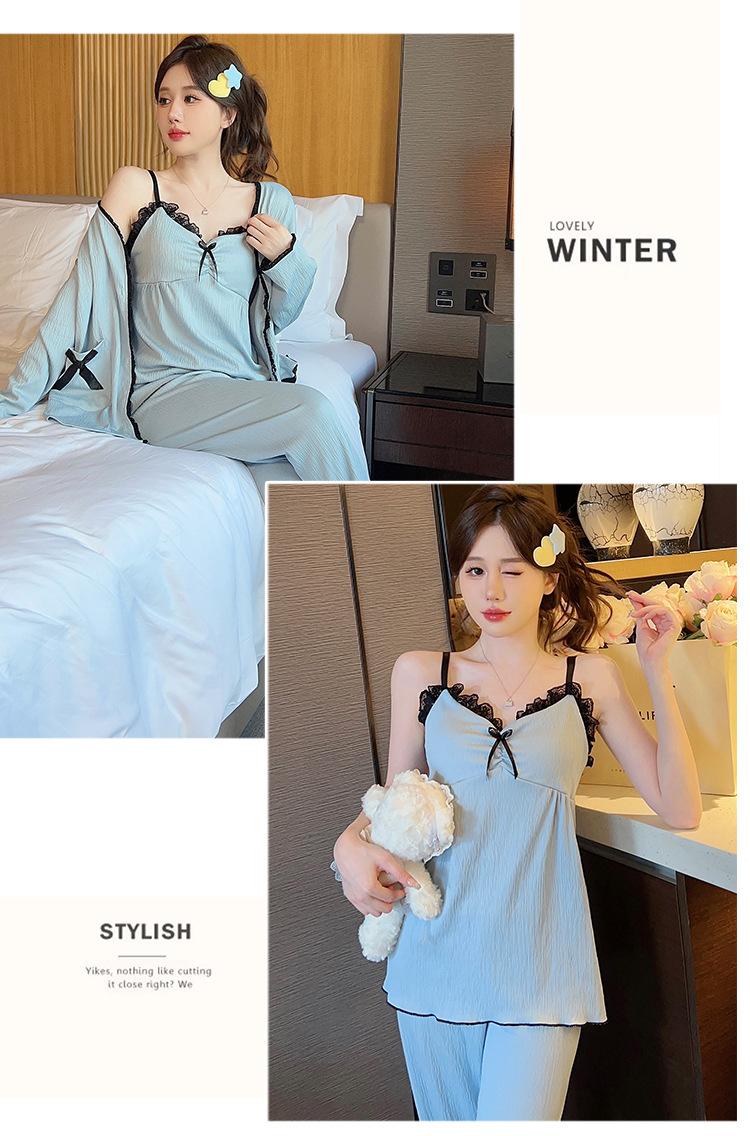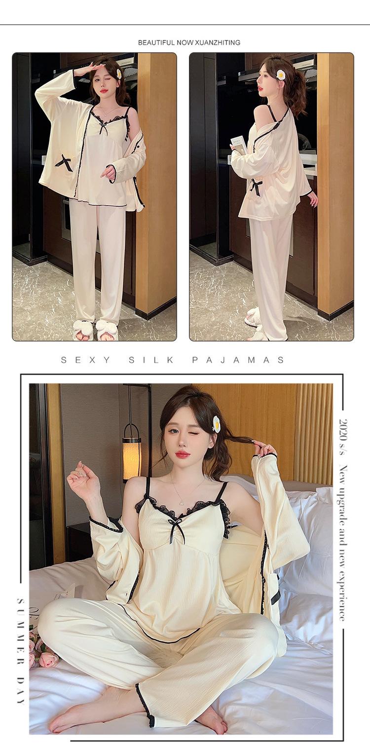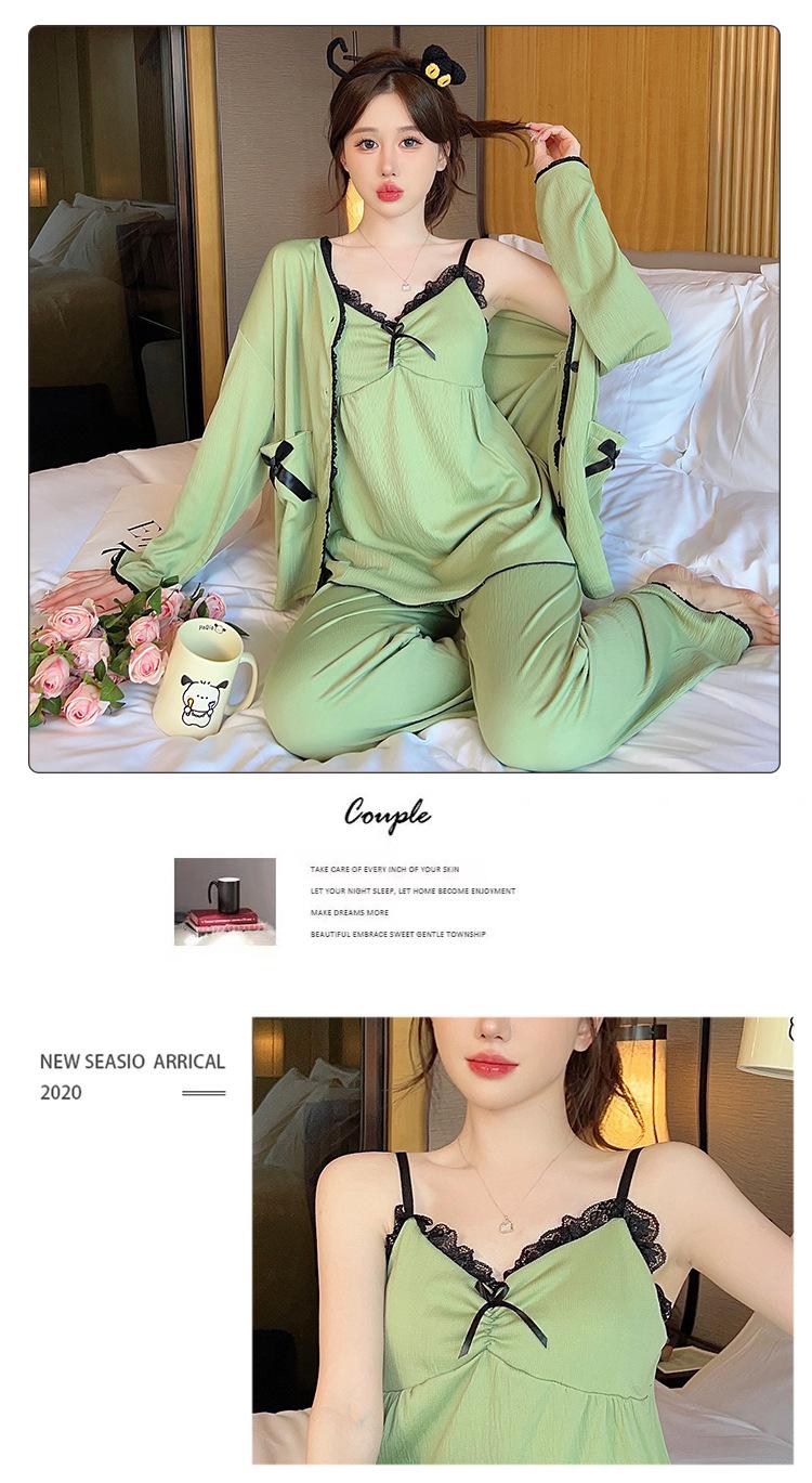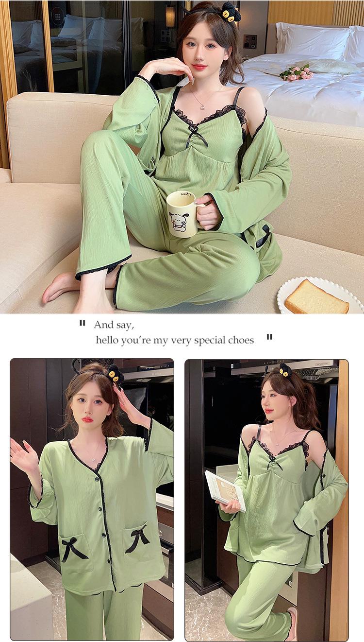 Pijama de mujer de primavera y otoño con tirantes finos y almohadilla para el pecho, pantalones de manga larga, talla grande 230 Jin, traje de tres piezas para el hogar