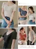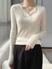 Camiseta Blanca de Cuello en V a la Moda para Mujer en Primavera, Otoño e Invierno con Tejido de Punto Versátil de Manga Larga de Imitación Cachemira y Tejido de Punto