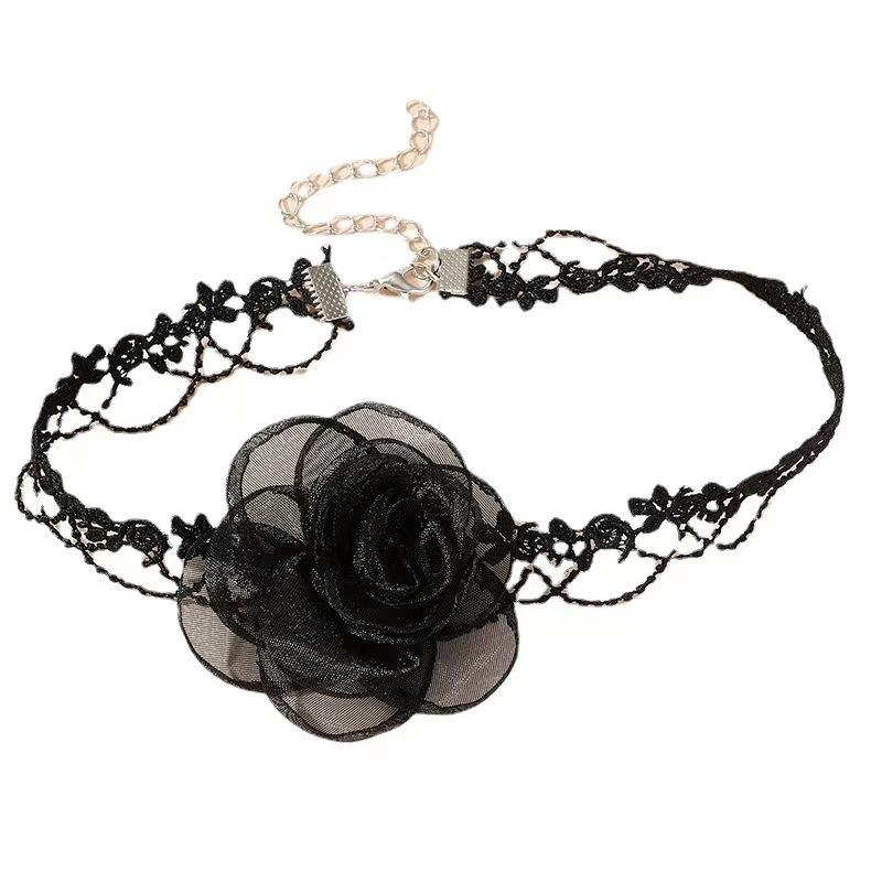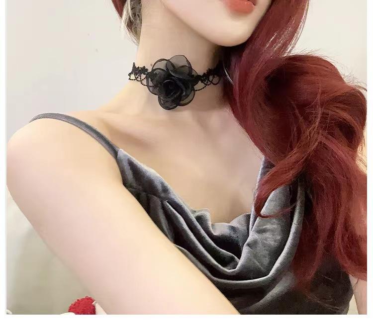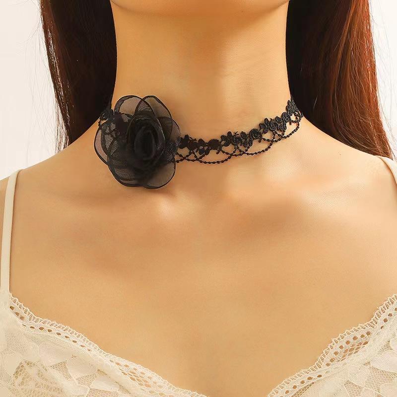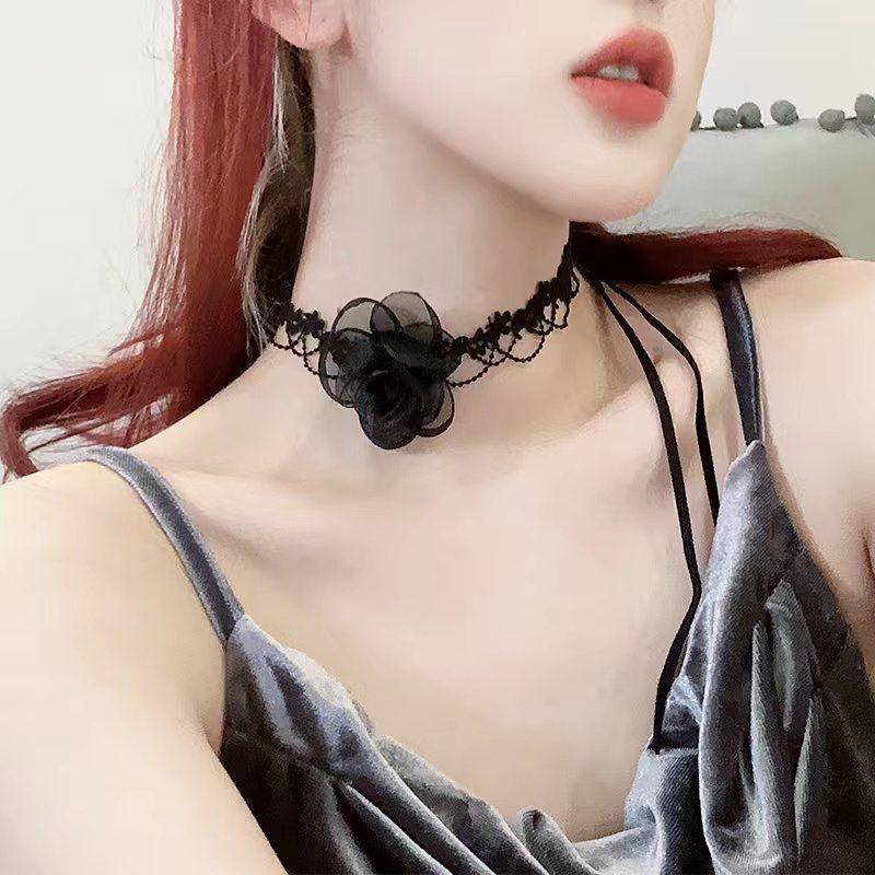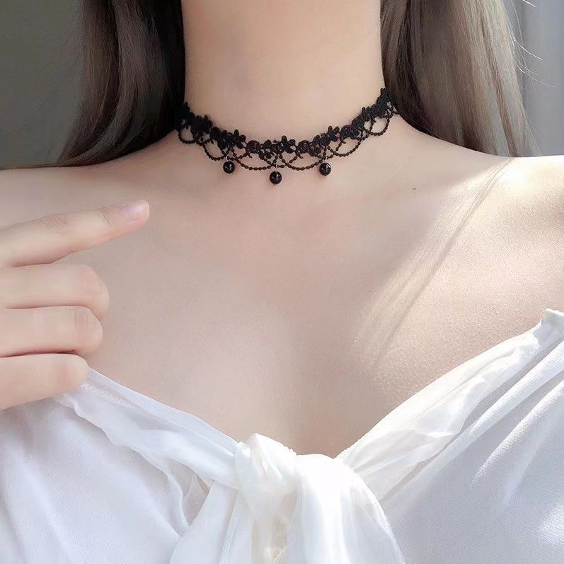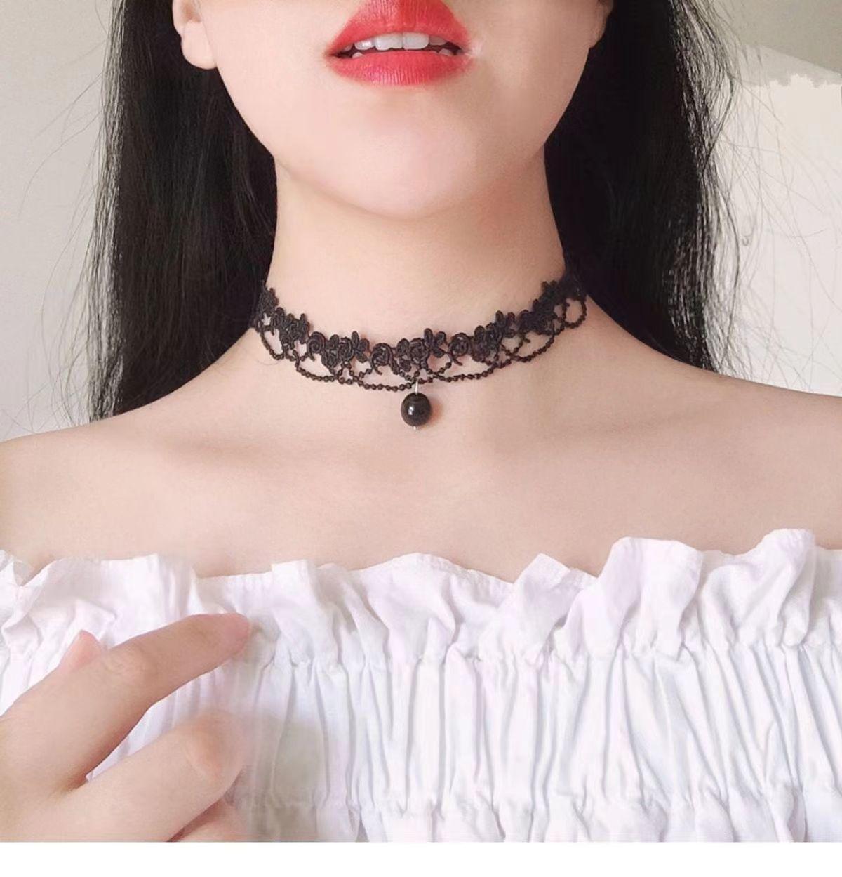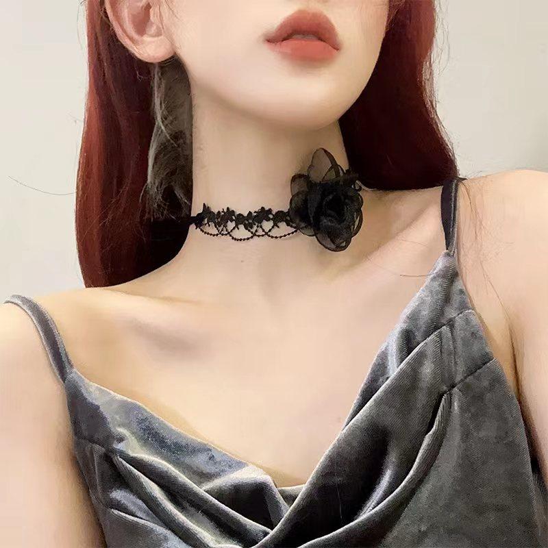 Collar de encaje de celebridad de Internet, collar de tul para mujer, collar de cuello, collar de cadena de clavícula negra, gargantilla, correa para el cuello, accesorios