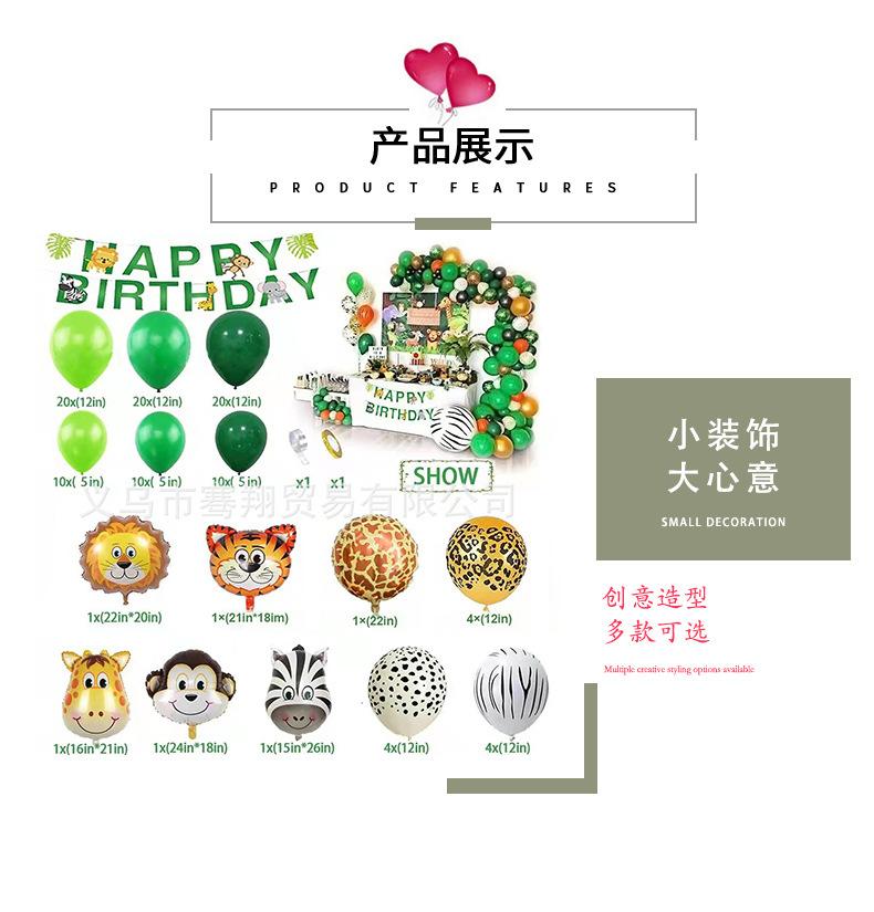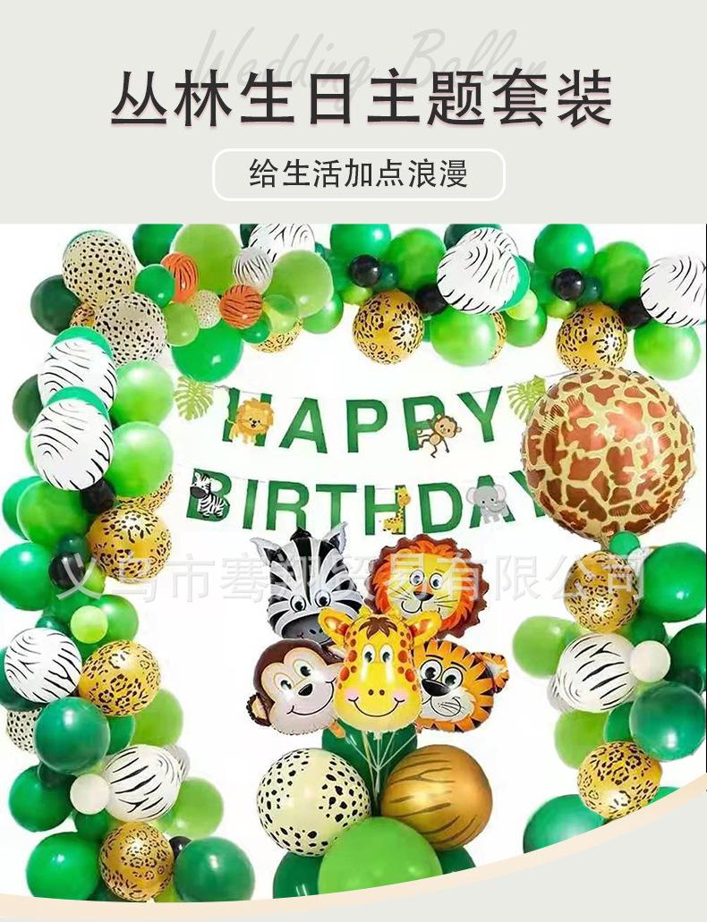 Globo de fiesta con temática de jungla transfronteriza, arreglo de cumpleaños infantil, juego de globos de película de aluminio con cabeza de animal, bola con impresión de látex