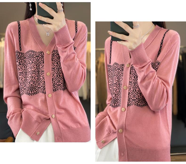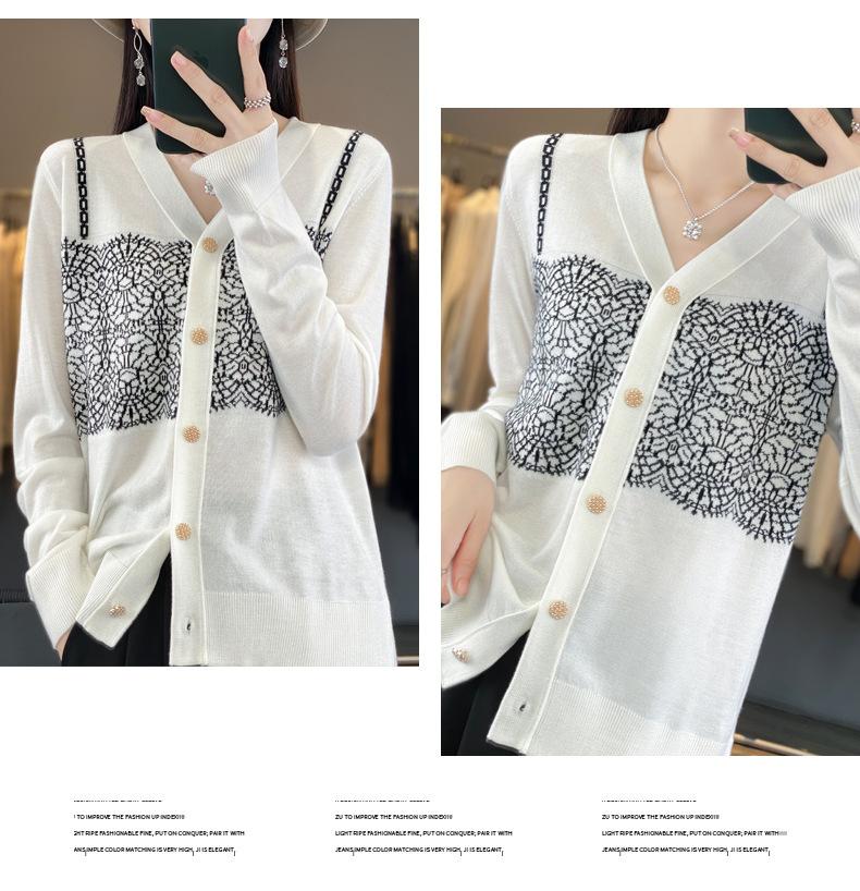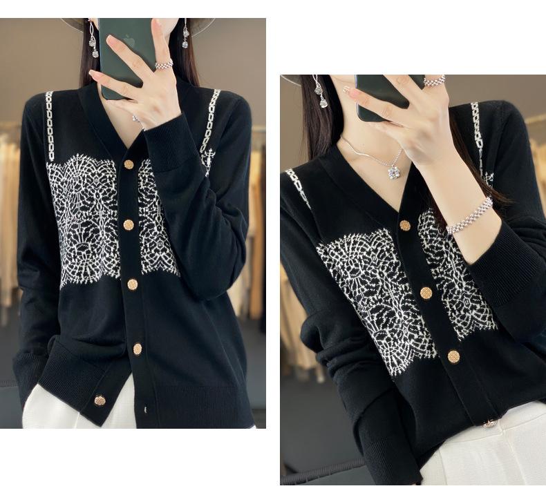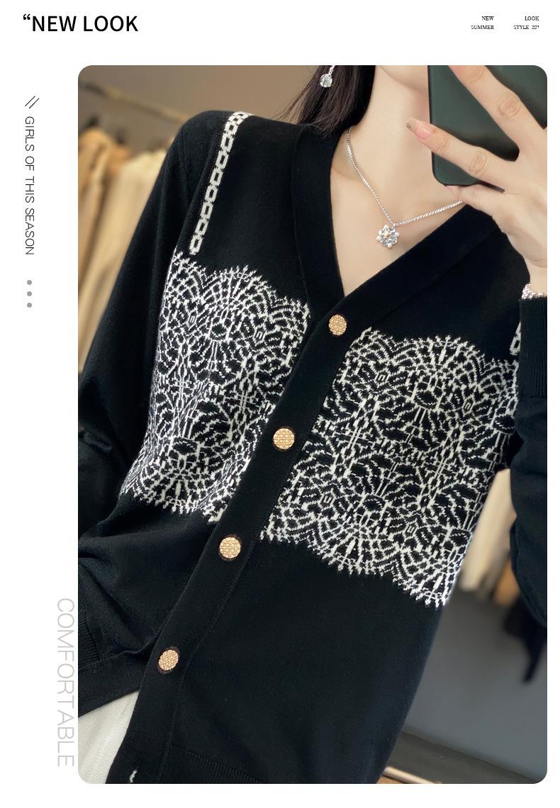 Cárdigan de punto estilo Chanel francés para mujer, primavera y otoño, nuevo suéter informal holgado con cuello en V, abrigo de moda con temperamento
