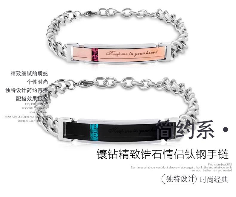 Pulsera de Moda Coreana Transfronteriza Pulsera Distintiva de Acero Inoxidable Incrustada con Diamantes Exquisita Pulsera de Circonio para Pareja Acero de Titanio